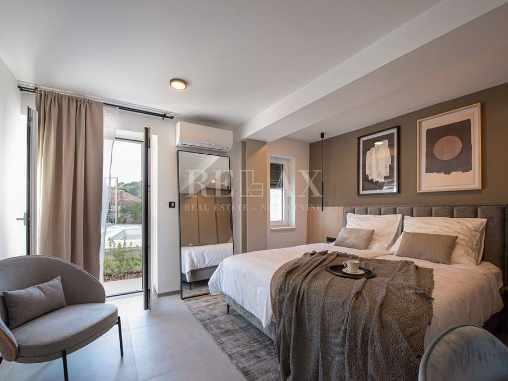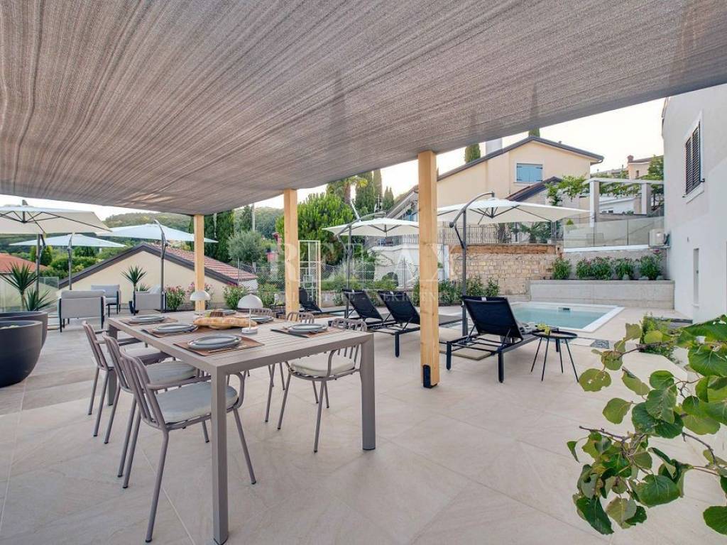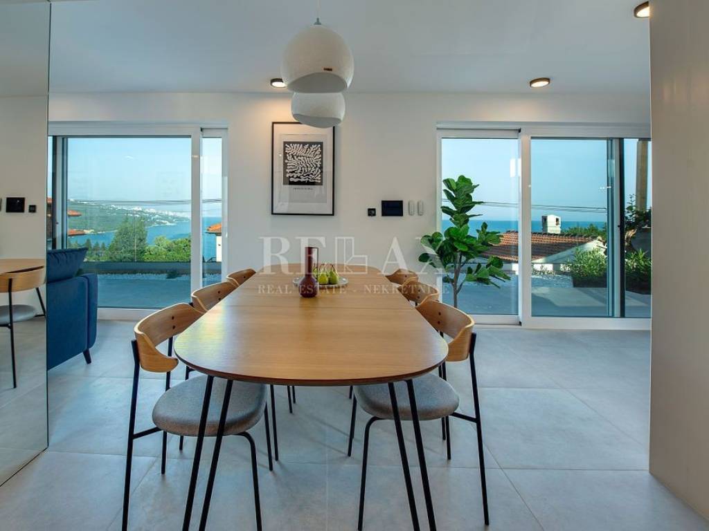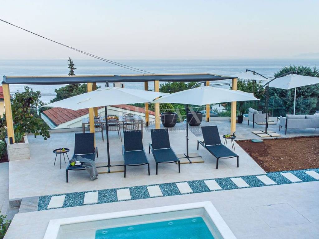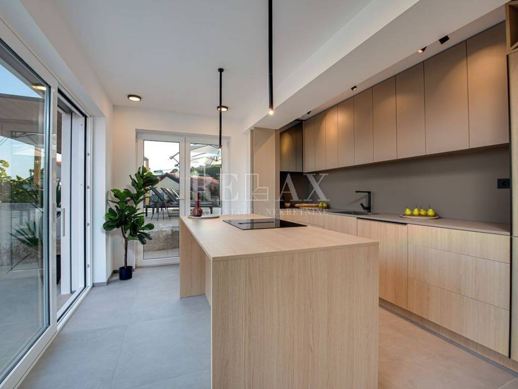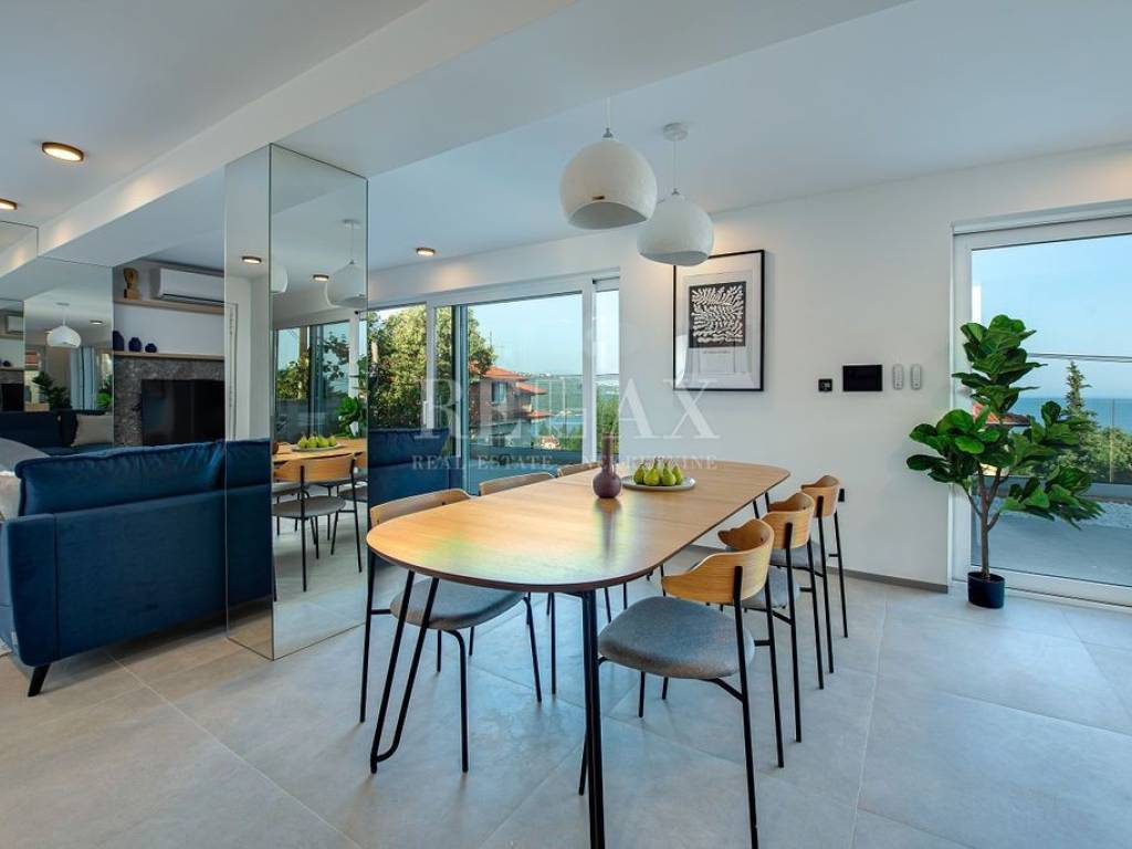 We proudly present this exclusive property located in a quiet part of the settlement Volosko, Opatija. This spacious 2-room apartment offers an ideal combination of luxury, comfort and beautiful sea views. This apartment offers a spacious living room connected to an open kitchen, creating a perfect space for family gatherings and hanging out with friends. In addition, there is also an elegant bathroom that adds a sense of luxury to everyday life. What sets this property apart is the large terrace that you will fall in love with at first sight. The sea view offered by this terrace provides an incredible opportunity for relaxation and beautiful sunsets. The apartment has access to a beautifully landscaped part of the garden, where you can enjoy the pool and the summer kitchen. Here you will find the perfect place for dining under the open sky and a comfortable lounge area for relaxing and socializing. This property is only 300 meters from the sea, which allows quick and easy access to the beaches and promenades along the coast. It is also close to all necessary facilities such as shops, restaurants and cafes, making everyday life extremely convenient. An additional advantage is the garage parking space, which allows you safe and practical access to your vehicle. This property represents an outstanding opportunity for anyone looking for the perfect home by the sea in a peaceful setting. Don't miss the opportunity and contact us today to find out more about this wonderful property.