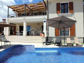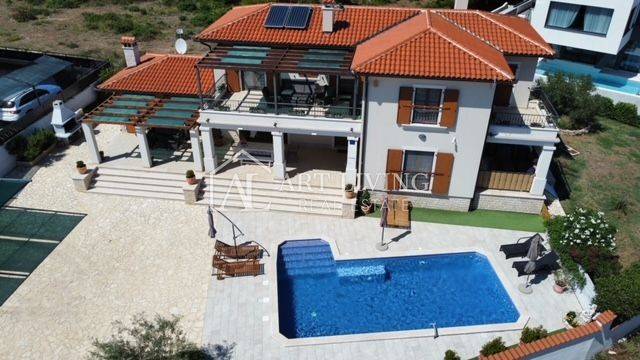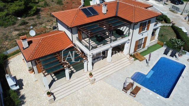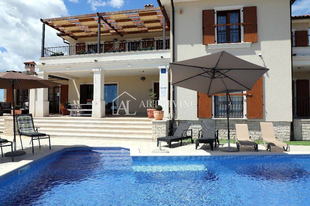 A luxurious family villa for sale with a swimming pool, in a quiet and beautiful village 200 meters from the sea with an open sea view.