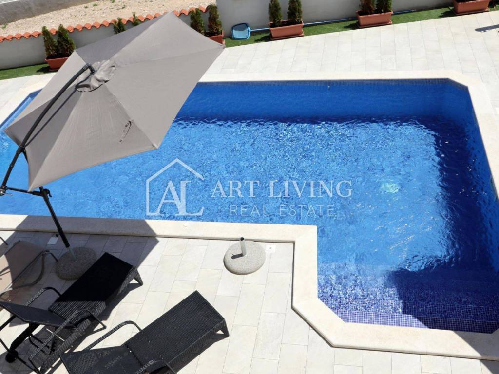 The villa also has its own landscaped and fenced garden with a swimming pool of 48 m2 and a sun deck, and 4 parking spaces.