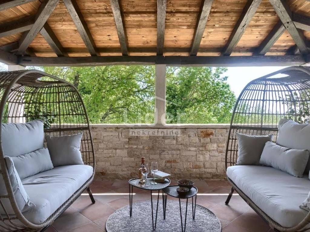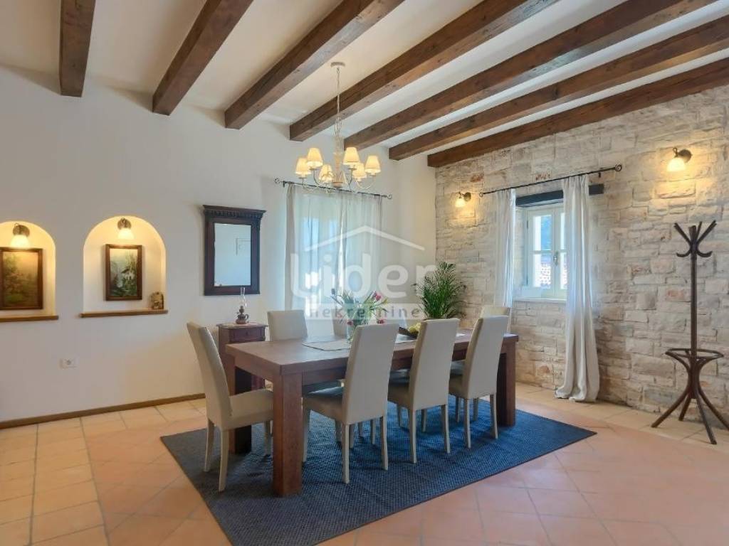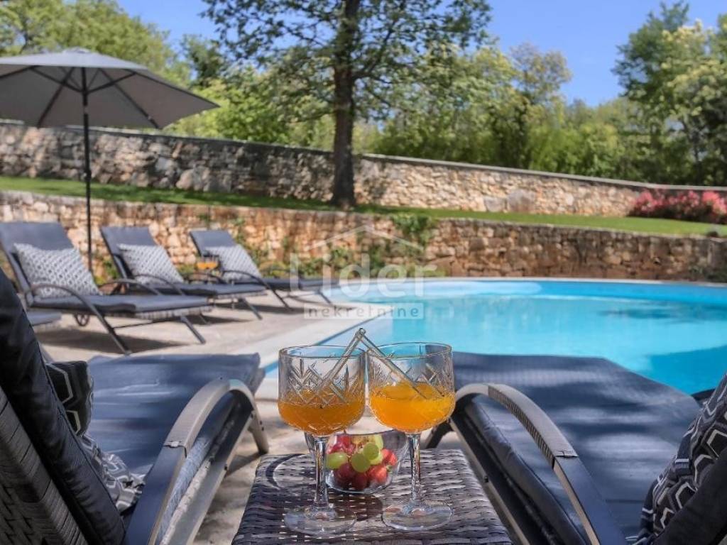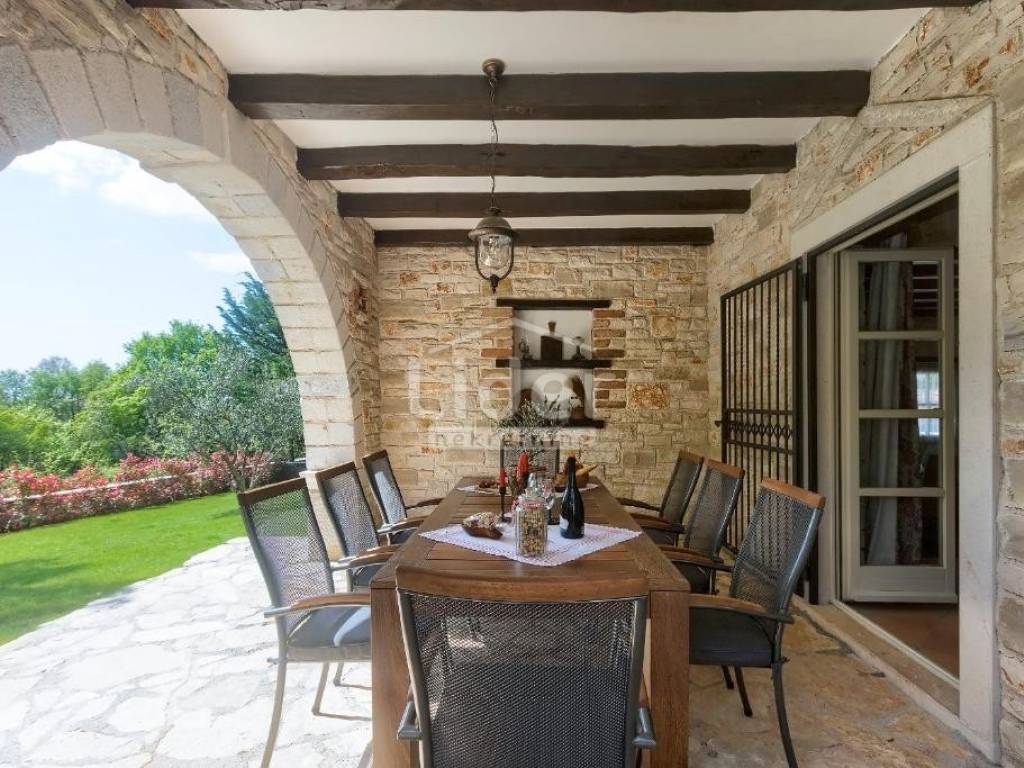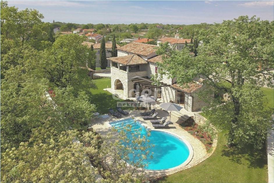 Near Tinjan, we are selling a beautiful stone villa with a swimming pool, of exceptional construction quality, indigenous elements of construction were used: dry stone walls, wooden beams, shutters, slates on the floor around the pool, covered terrace for "al fresco" dining.