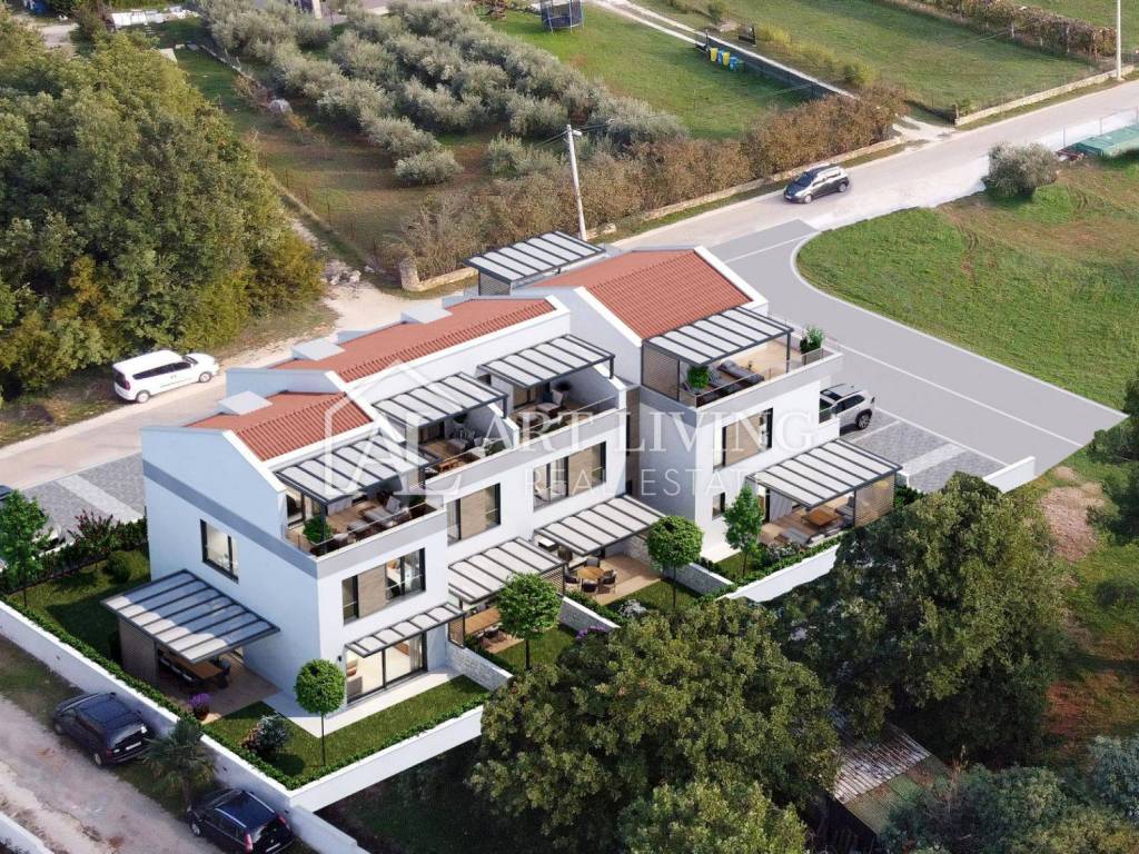 A house for sale in a row of modern design in a beautiful and peaceful environment, only 2000 m from the beautiful Poreč beaches and the same distance from the city center and the beautiful Poreč promenade. Of the other attractions not far from Poreč, it is important to emphasize the Aquacolors aquapark, which is only 6 km from the house, and the go-kart track with numerous adrenaline attractions is 7 km from the house.