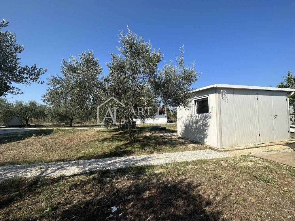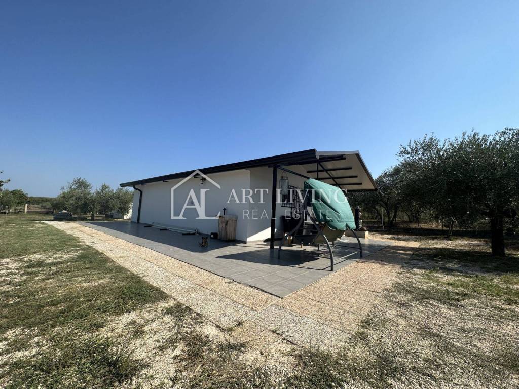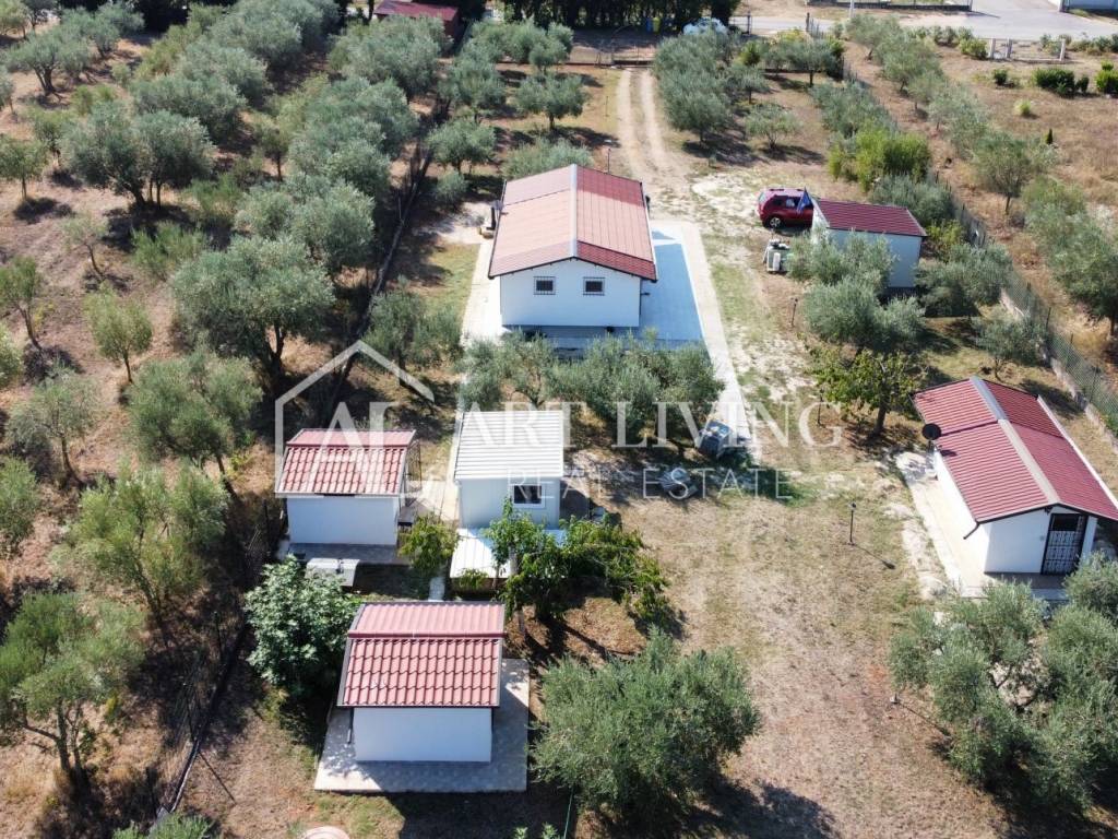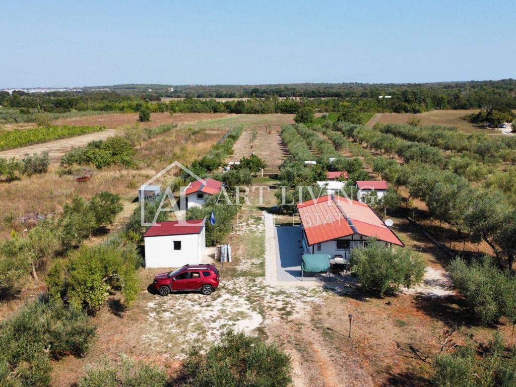 Imanje je pravilnog četverokutnog oblika s asfaltiranim pristupnim putem. Sastoji se od 3 dijela, ulaznog uređenog prostranog zemljišta, središnjeg prostranog dijela sa 6 samostojećih objekata u kojima se nalazi prostorija za dnevni boravak sa nekoliko ležaja i zasebnom kuhinjom te blagovaonom, zatim prostorije sa uređenom kupaonom, objekta sa dodatnom spavaćom sobom i prostorom za odmor, te objekta za pohranu radnog materijala i stvari. Svi samostojeći objekti okruženi su prelijepim višegodišnjim maslinama te lijepo uređenim voćnjakom. Treći dio imanja sastoji se od prostranom uređenog i održavanog maslinika sa stotinjak maslina.