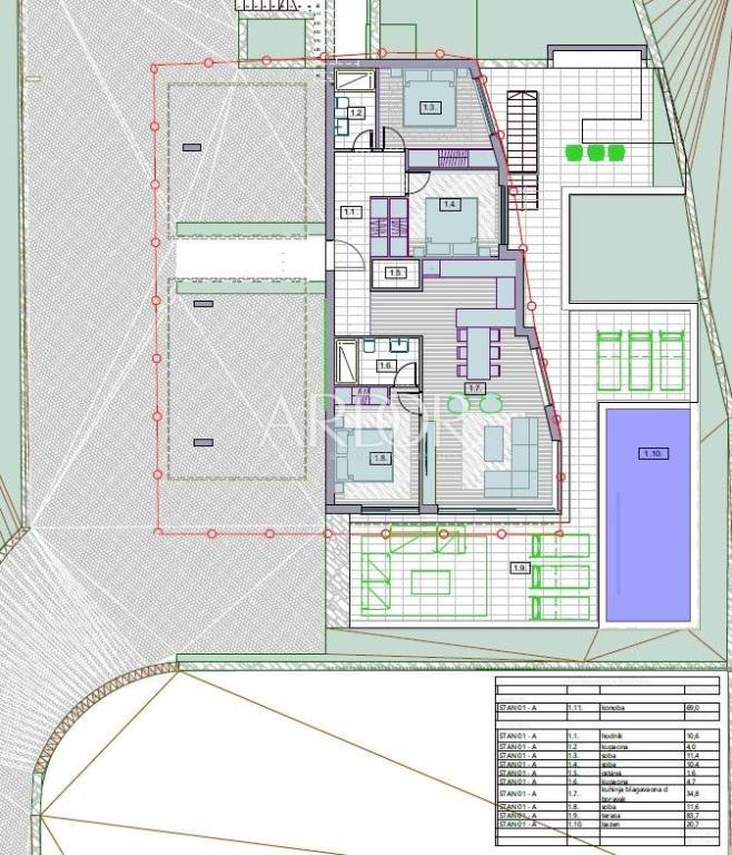 For sale is a modern, newly built apartment on the ground floor of an urban villa, only 500 meters from the sea.