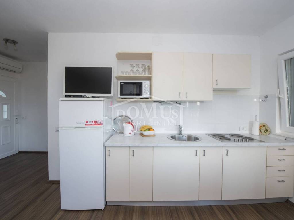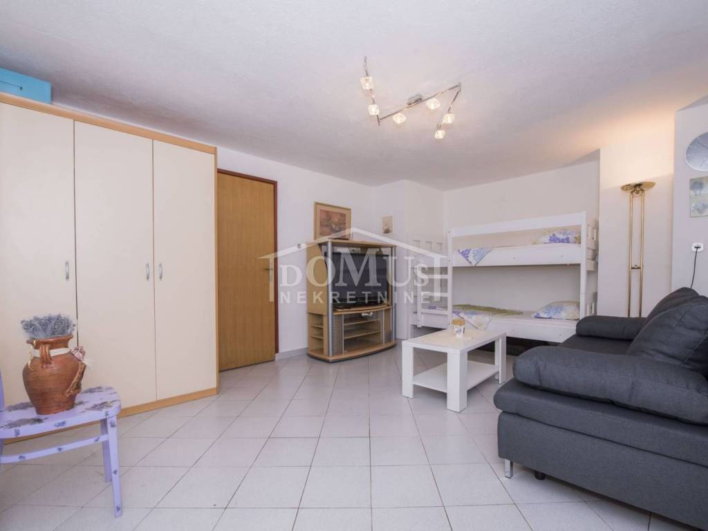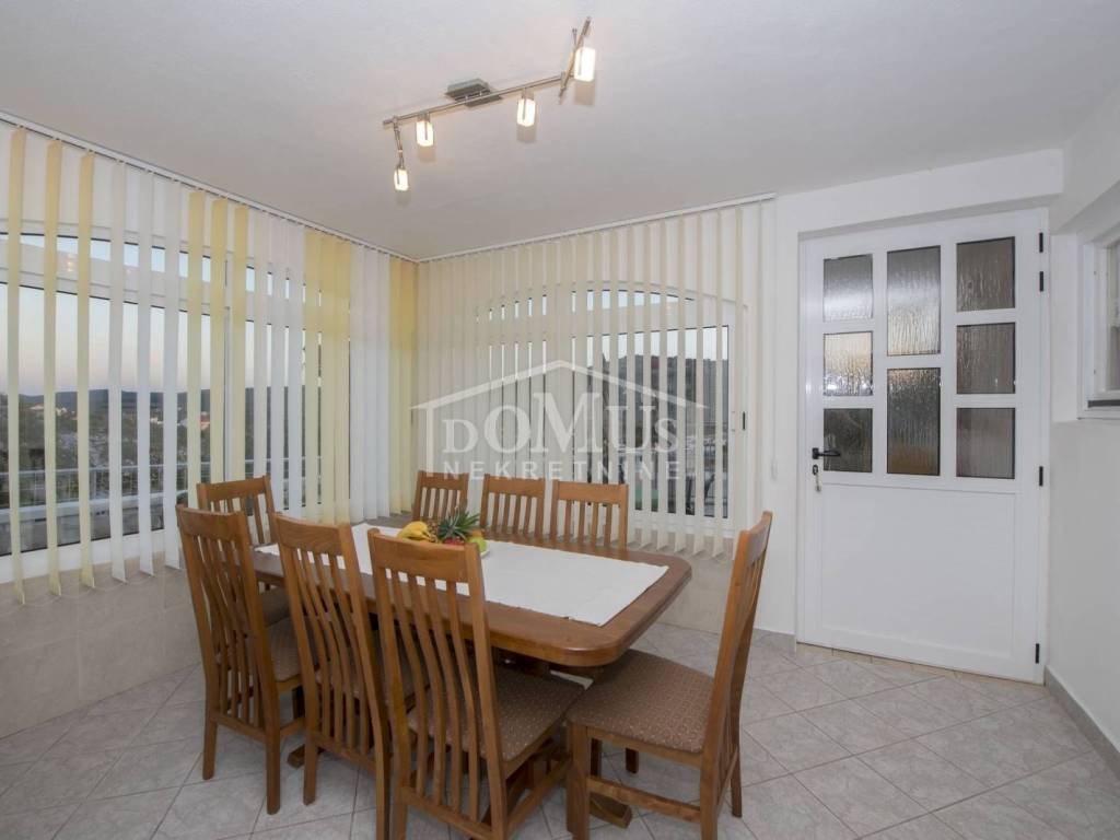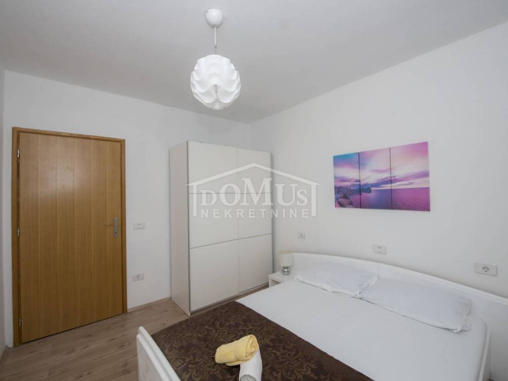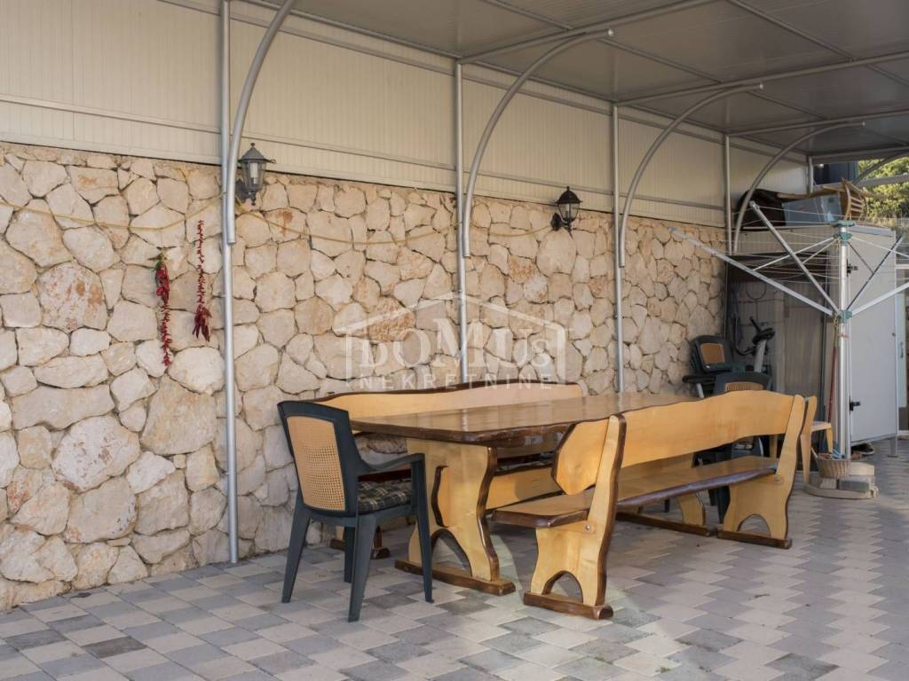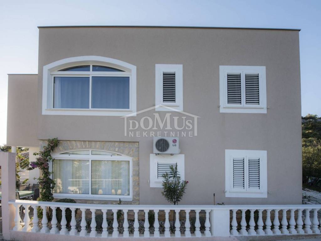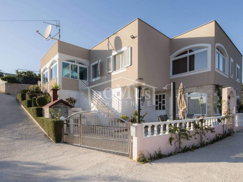 Rogoznica, Stupin Čeline, detached house on two floors, quiet environment and beautiful views of the landscape. The house has a total of 183.92 m2 and consists of 4 apartments, the house was built on a plot of 600 m2. It consists in the basement of a comfortable 3-bedroom apartment. The high ground floor has three separate apartments, one 2-bedroom apartment, one 1-bedroom apartment and one studio apartment. The house is fully furnished and ready to move in immediately. There is a possibility of installing a swimming pool. Next to the house there is parking for several cars. The location of this property ensures a quiet, peaceful and pleasant vacation with unobstructed views of the countryside and the sea. The house is 620m from the beach and 2.7km from the center.