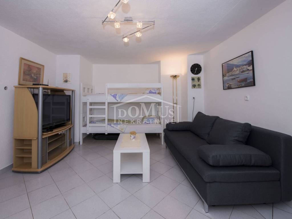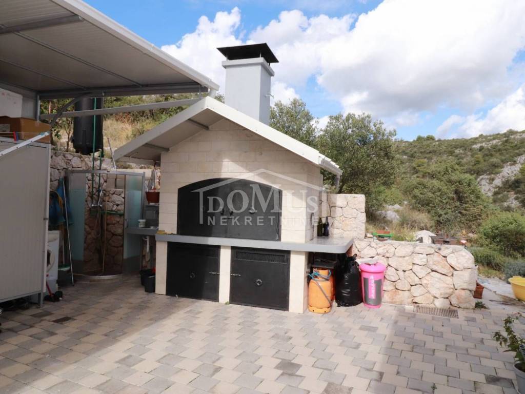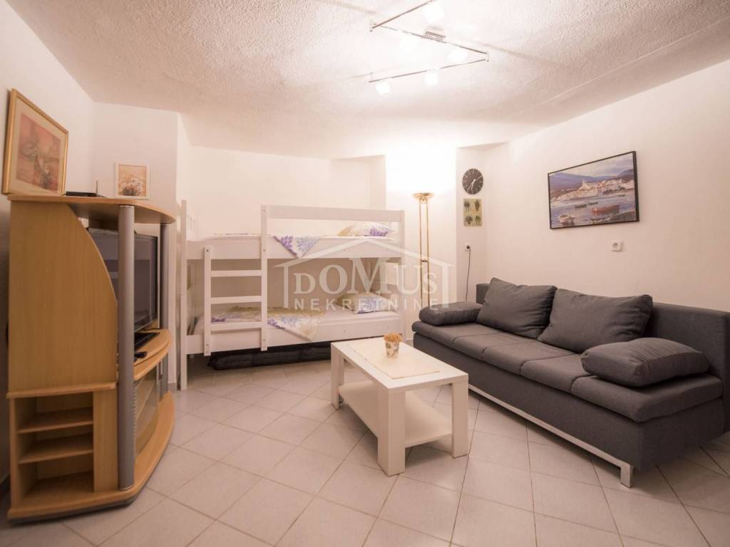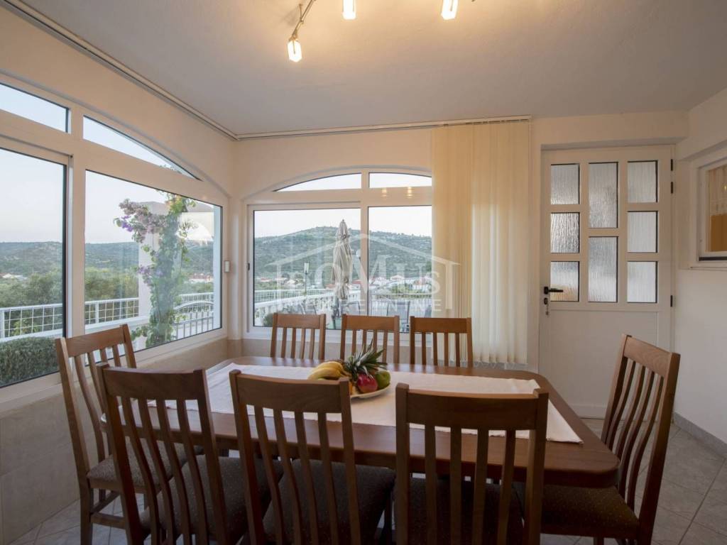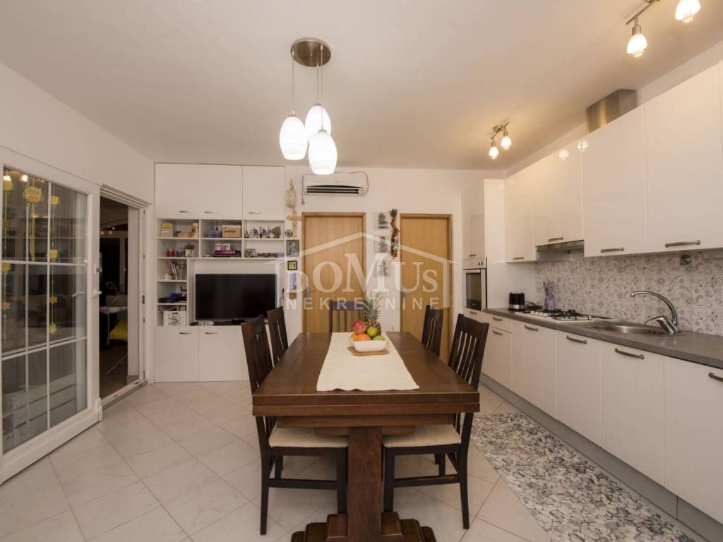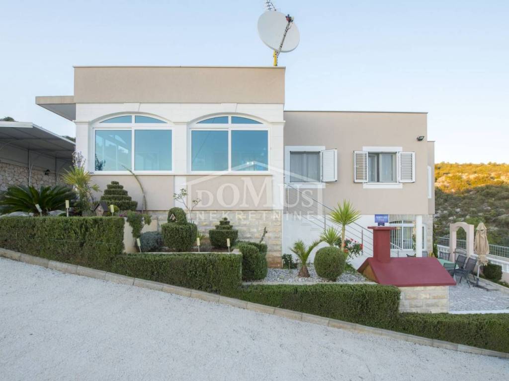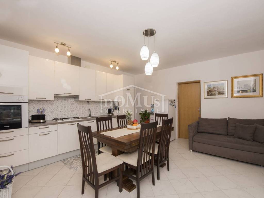 Rogoznica, Stupin Čeline, detached house on two floors, quiet environment and beautiful views of the landscape. The house has a total of 183.92 m2 and consists of 4 apartments, the house was built on a plot of 600 m2. It consists in the basement of a comfortable 3-bedroom apartment. The high ground floor has three separate apartments, one 2-bedroom apartment, one 1-bedroom apartment and one studio apartment. The house is fully furnished and ready to move in immediately. There is a possibility of installing a swimming pool. Next to the house there is parking for several cars. The location of this property ensures a quiet, peaceful and pleasant vacation with unobstructed views of the countryside and the sea. The house is 620m from the beach and 2.7km from the center.