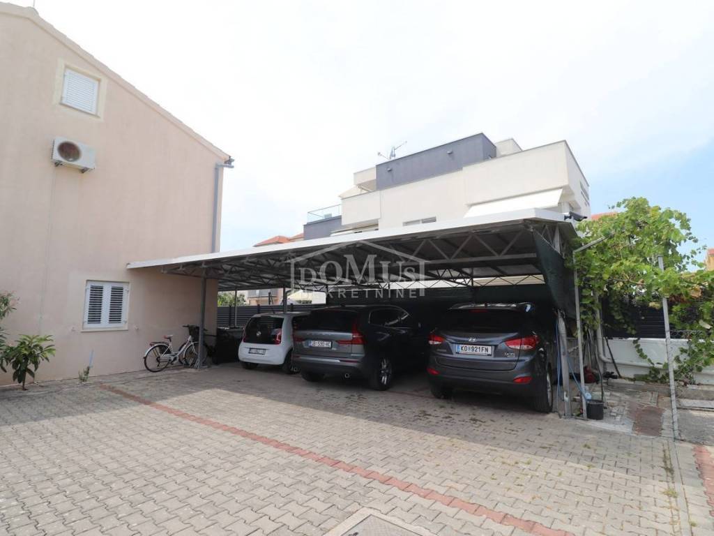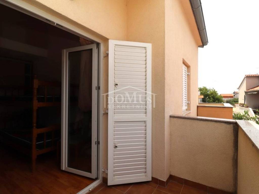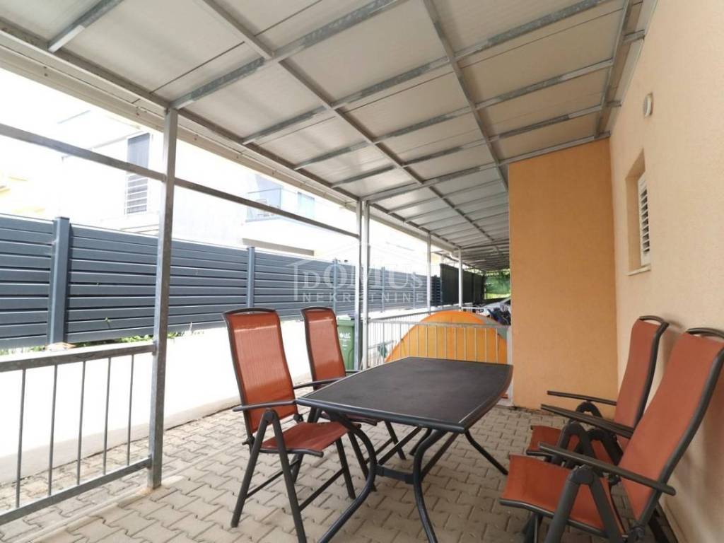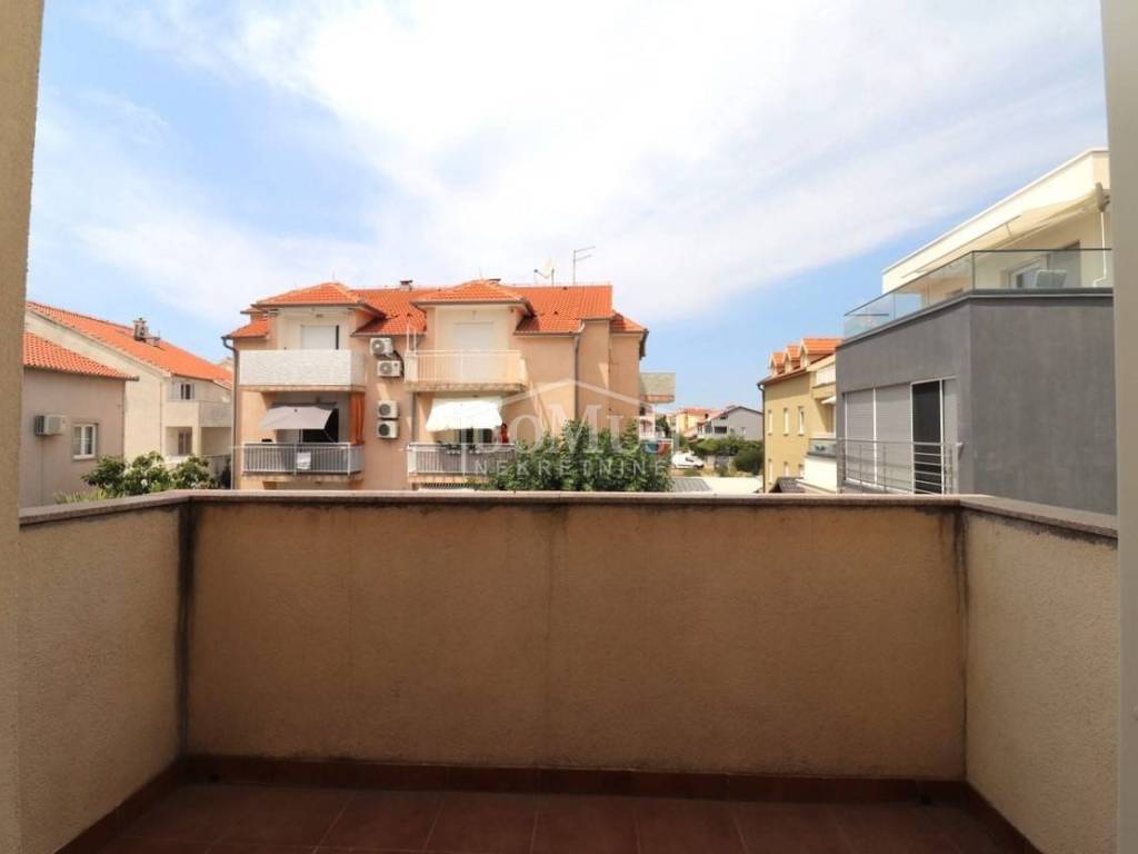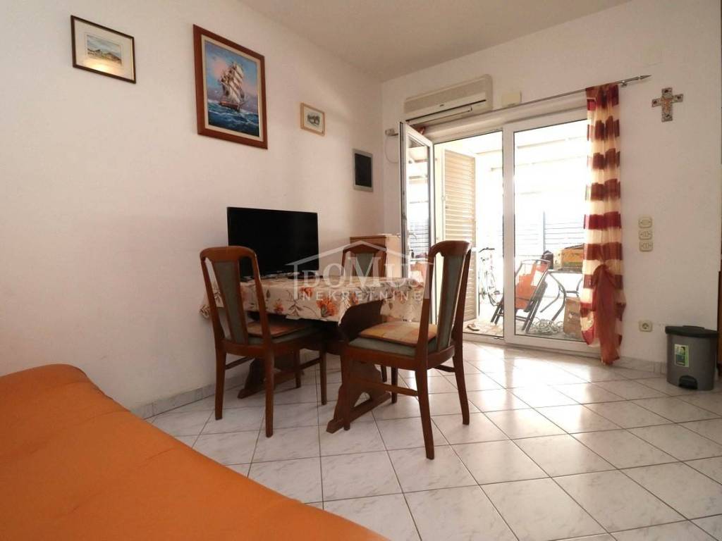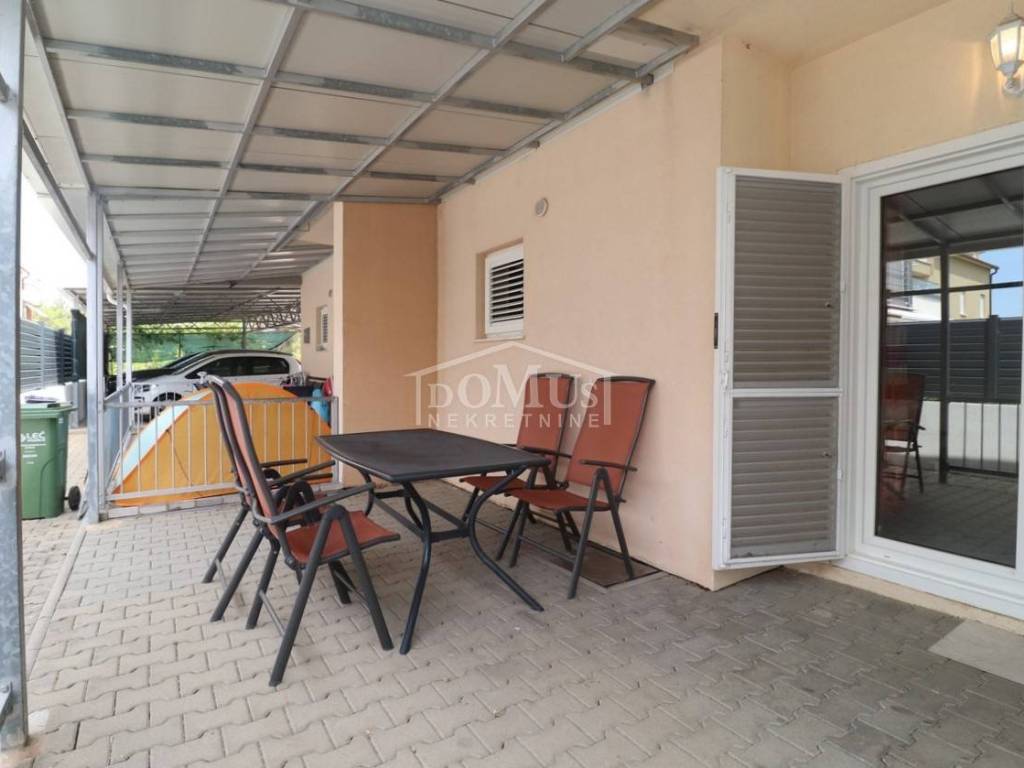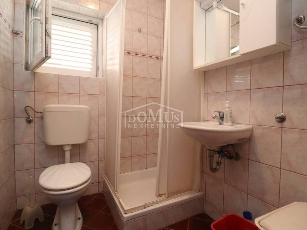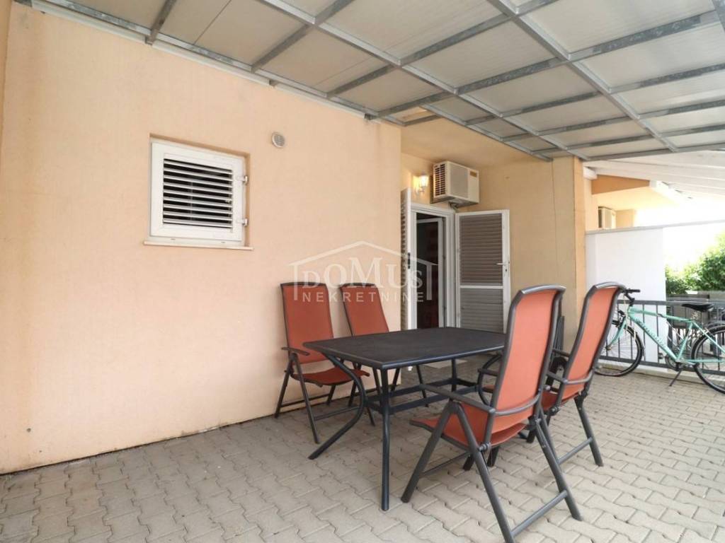 Quiet location in Srima, only 410 m away from the sea / beach, furnished two-story (ground floor + first floor) apartment with a total usable area of 53.70 m2. On the ground floor the apartment consists of a kitchen and living room with access to a covered terrace and a bathroom. Internal stairs lead to the first floor where there is a hallway, toilet, two bedrooms, one of it has an uncovered terrace. The apartment is air-conditioned, fully furnished and included in the price. The apartment has one parking spot. It is only 410m from the beach, and 1500m from the town center.