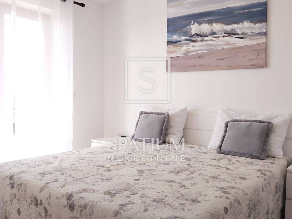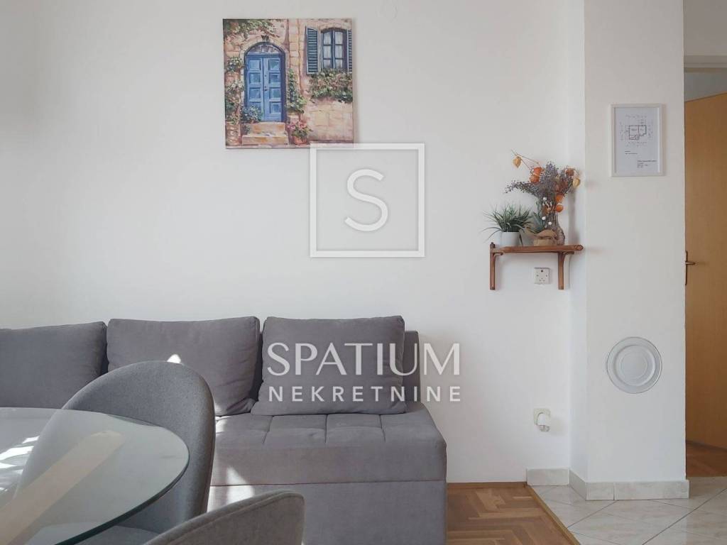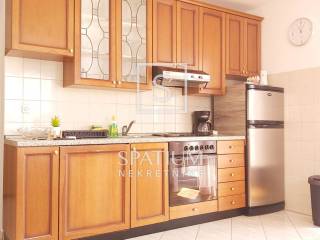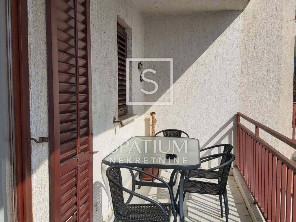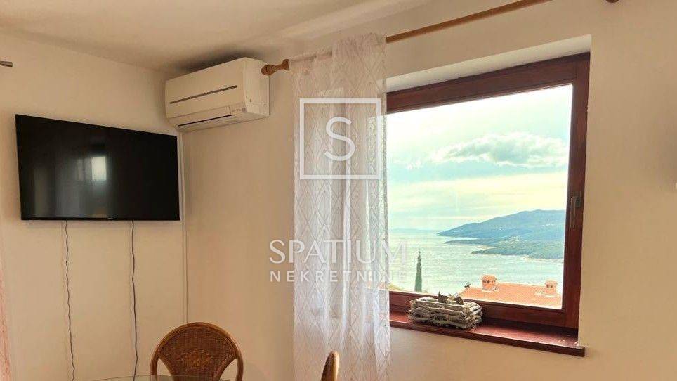 RABAC, a fully furnished apartment with a surface of 43.67 m² is available for sale, located on the first floor of a residential building in a quiet street. The apartment consists of a kitchen with dining area and living room, one bedroom, and a bathroom. Two spacious terraces with an open sea view provide the perfect place to relax and enjoy the Mediterranean surroundings. The apartment also includes a storage room in the basement. It is equipped with an air conditioning unit, while the chimney allows an additional heating option with wood or pellets. The property has clean ownership, free of encumbrances, and all essential amenities and beaches are within walking distance.