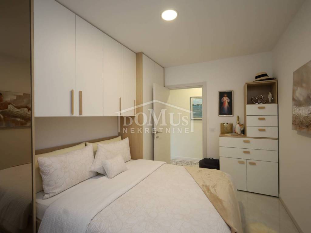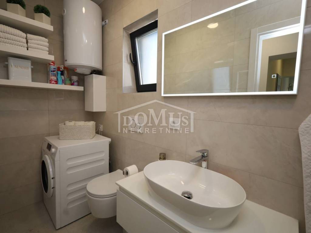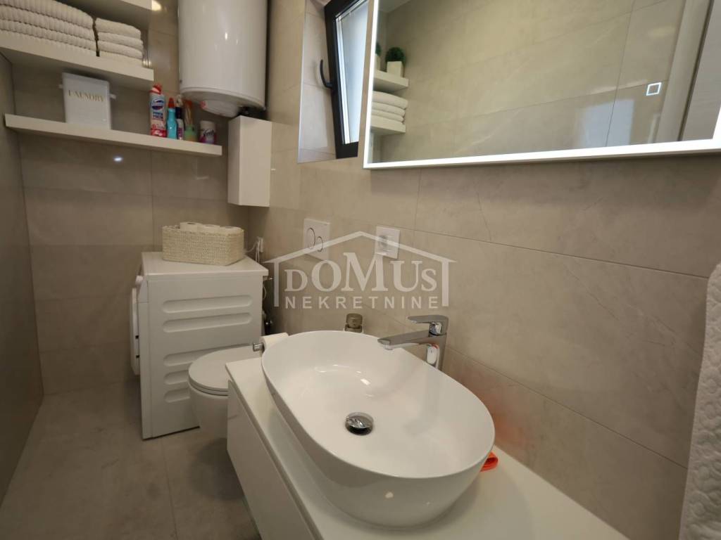 Vodice, in an attractive location, only 300 m from the Vruje beach, furnished 2-bedroom apartment with a total of 65.36 m2 of usable area. The apartment is located on the 1st floor of a small residential building. It consists of a hallway, bathroom, two bedrooms, kitchen with dining room and living room with access to a spacious terrace. The apartment is air-conditioned and fully furnished. It has 2 parking spaces. The apartment is located only 300 m from the beach, and 500 m from the center and all important amenities for life.