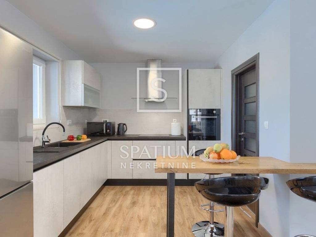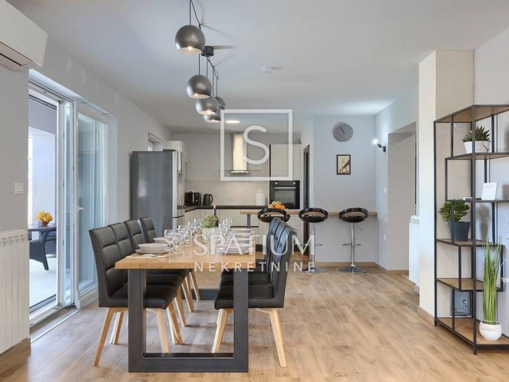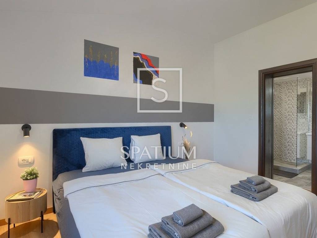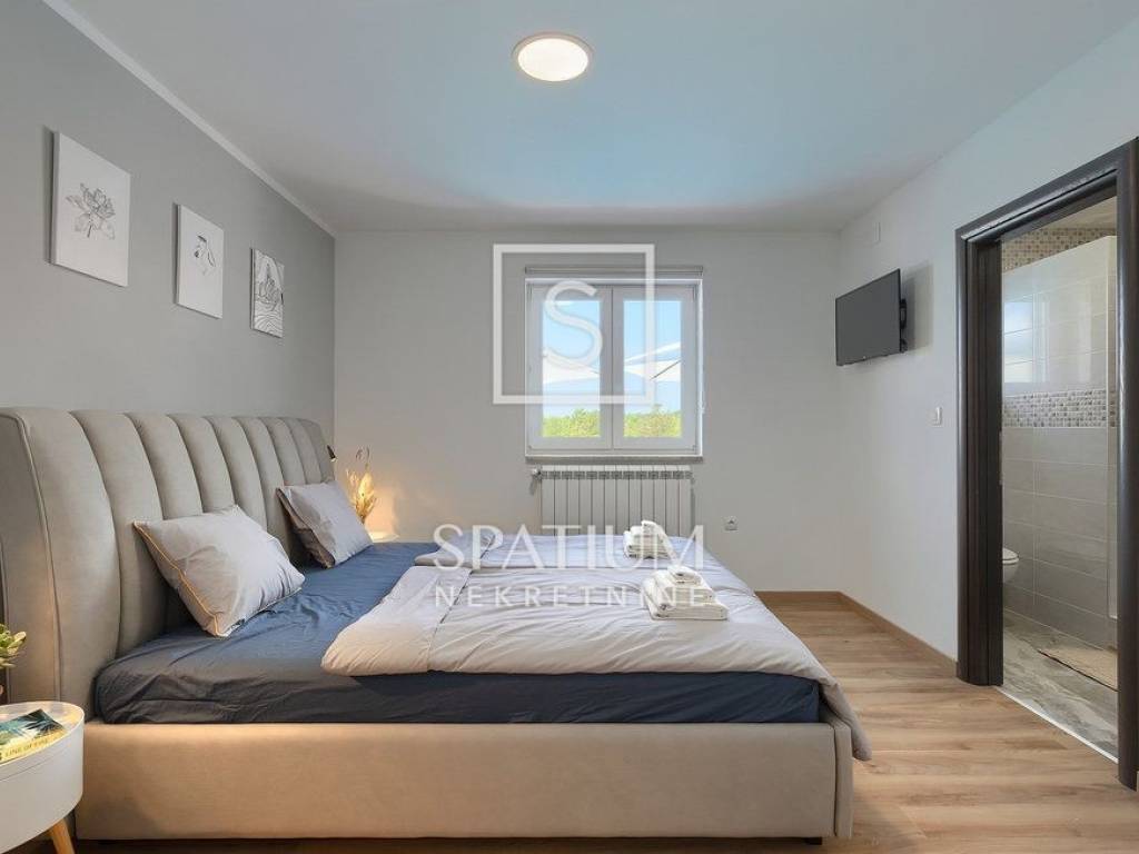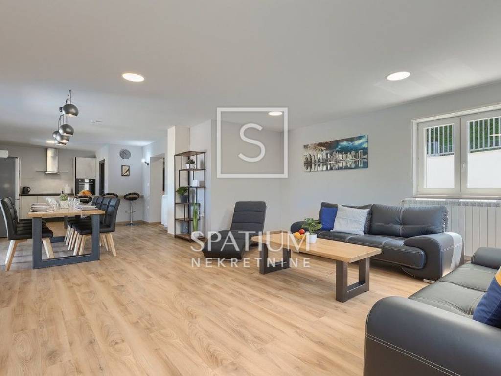 LABIN – SURROUNDINGS, a spacious family home with a total living area of 250 m² is offered for sale, situated on a beautifully landscaped 1,400 m² plot with a garden and swimming pool. The house consists of a ground floor and an upper floor.