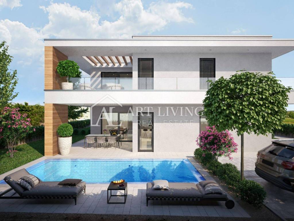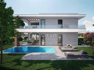 For sale: a modern semi-detached house with a swimming pool, located in a quiet and beautiful area just a few minutes' walk from the center of Umag and only 500 meters from the sea and well-maintained beaches.