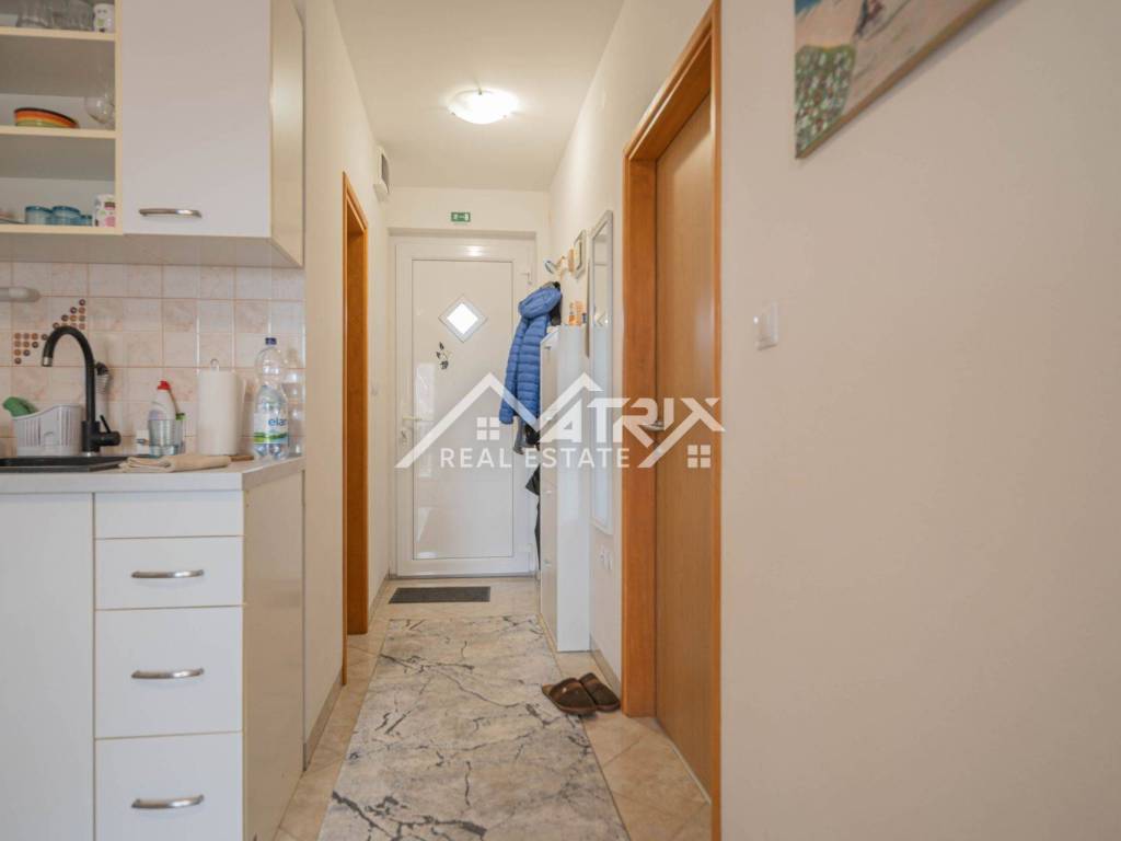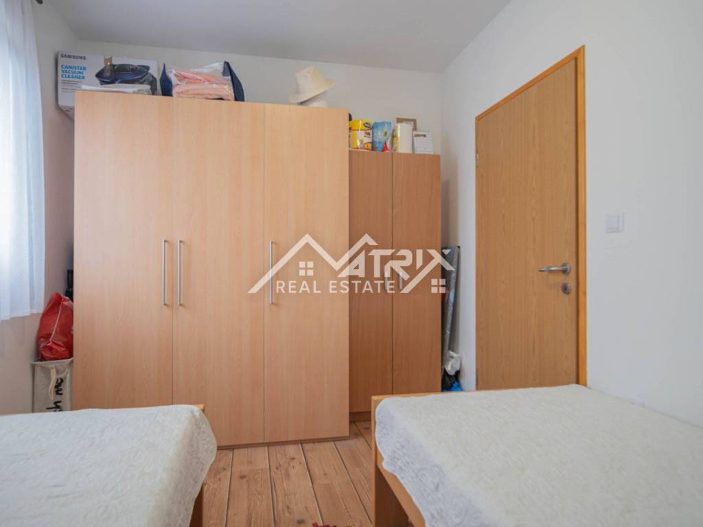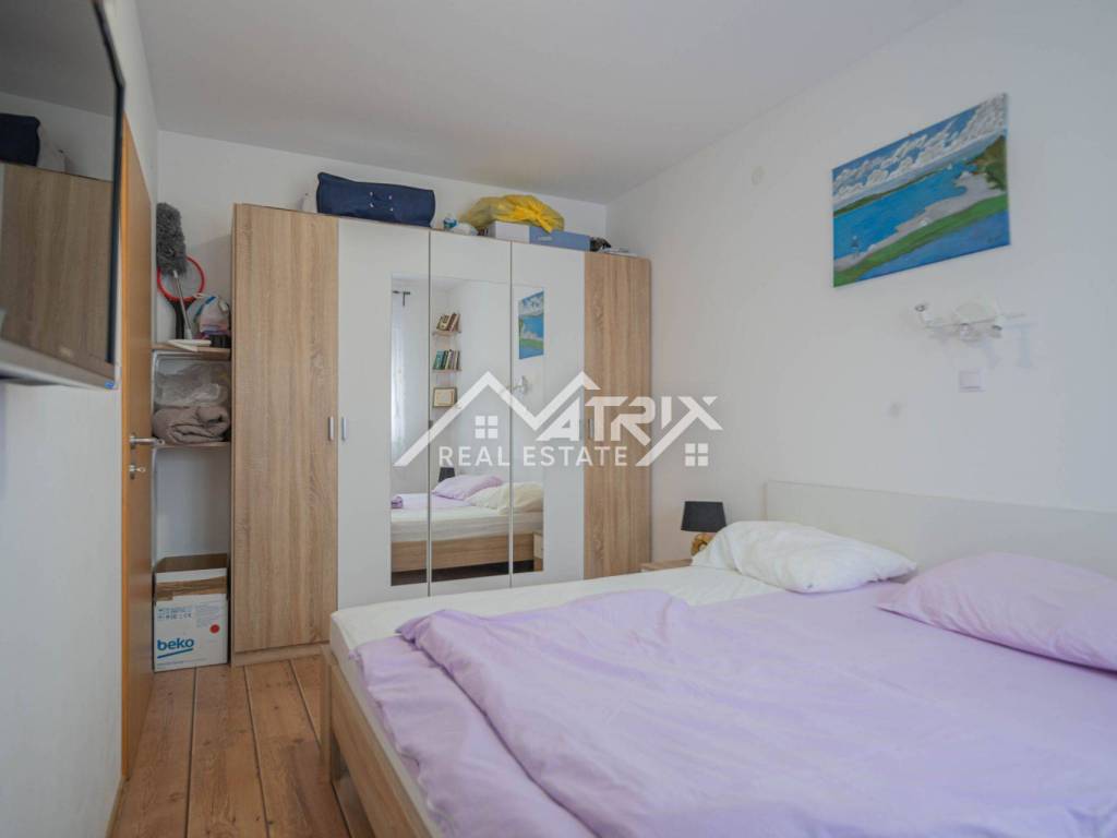 In a peaceful and attractive location in Ližnjan, on the first floor of a small residential building with a total of five apartments, a sunny and functional 44 m² apartment is for sale. The apartment consists of a hallway, an open-space living room with a kitchen and dining area, two bedrooms, and a bathroom. The covered terrace offers a partial view of the sea and the bay.