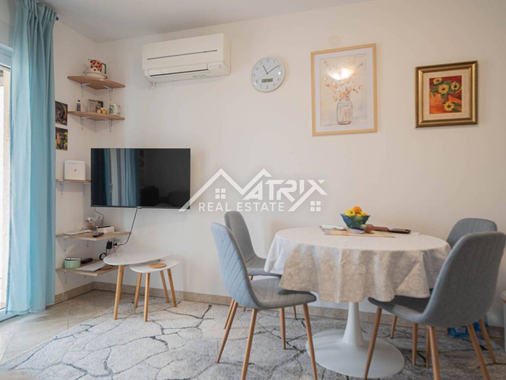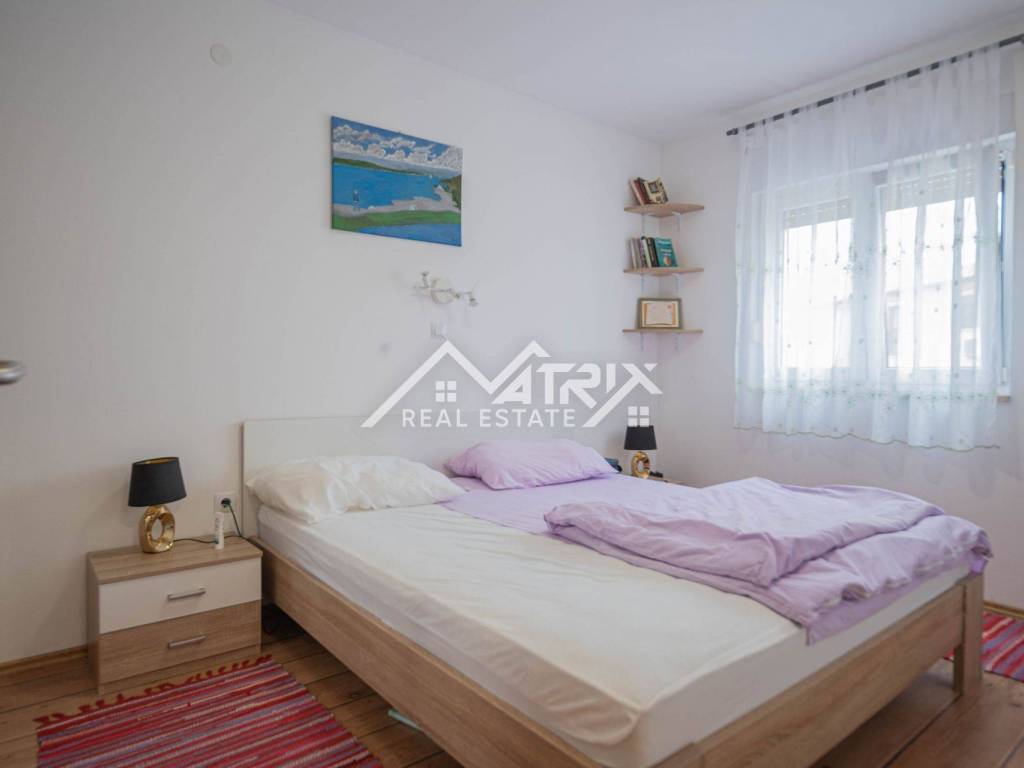 The apartment is fully furnished, equipped with PVC joinery and mosquito nets, and is connected to solar panels, ensuring significant energy savings. It includes a private parking space in the fenced yard, and there is a shared storage room in the basement for all residents. The neat and spacious garden of 357 m² with a shared barbecue adds value to the property, providing space for relaxation and socializing. The building has a private entrance and is fenced with a gate, further enhancing security and a peaceful environment.