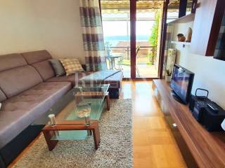 The ground floor includes everything needed for practical and comfortable living: two garages with direct access to the house, a one-bedroom apartment, laundry room, sauna, boiler room, and a number of storage and utility rooms. The three upper floors are divided into separate apartments of 120 m² each, featuring a functional layout with two bedrooms, a bathroom, an additional toilet, kitchen, dining area, and a living room with access to a large terrace offering a beautiful, open sea view. The ground floor has its own entrance, while the upper floors are connected by an internal staircase.