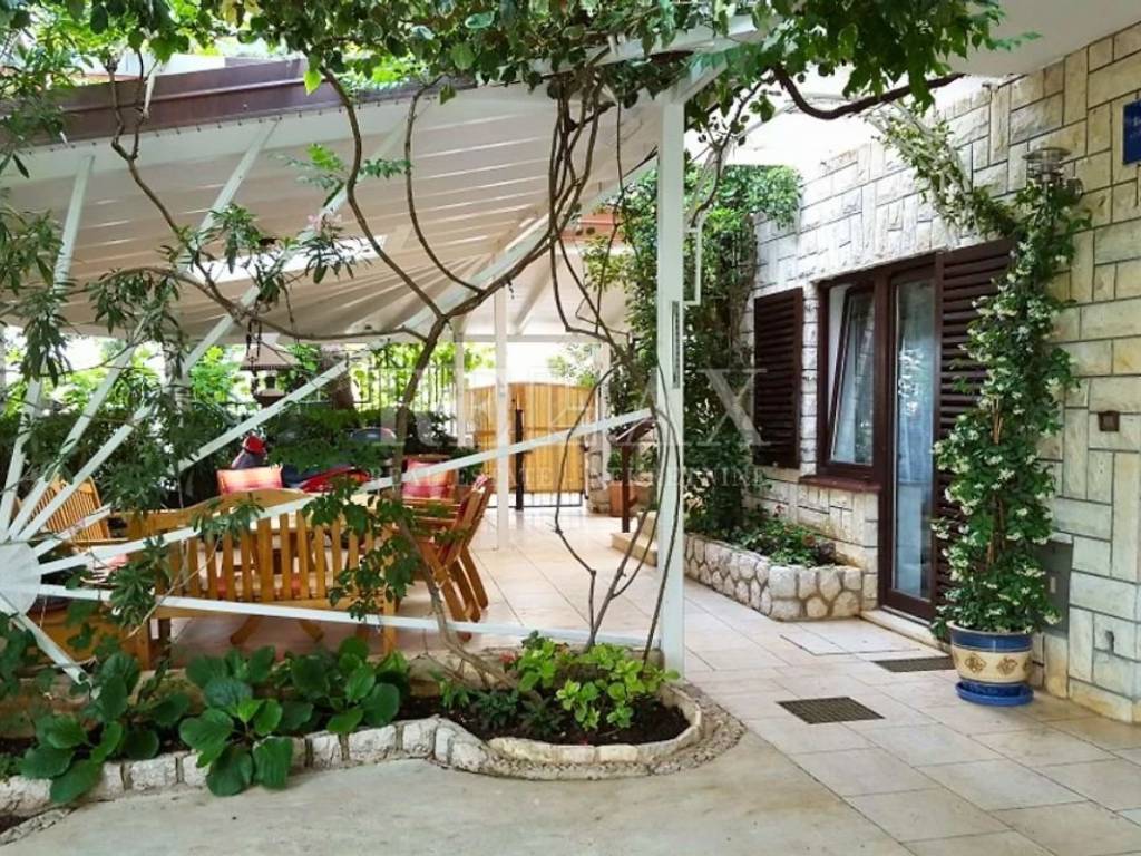 In Dramalj, just a few minutes' walk from the crystal-clear sea and the town center, lies this spacious detached house with four floors and a total living area of 550 m², surrounded by a well-maintained garden and a 630 m² yard. The location offers peace and privacy while being close to all necessary amenities, making this property extremely attractive.
