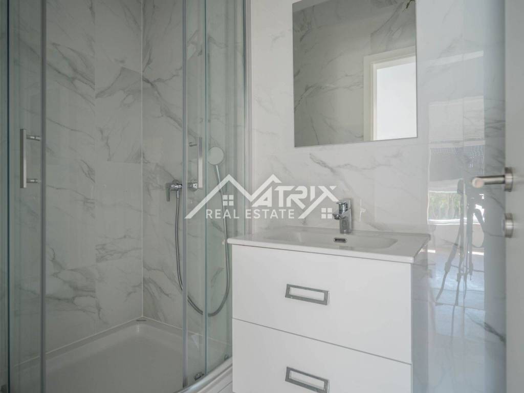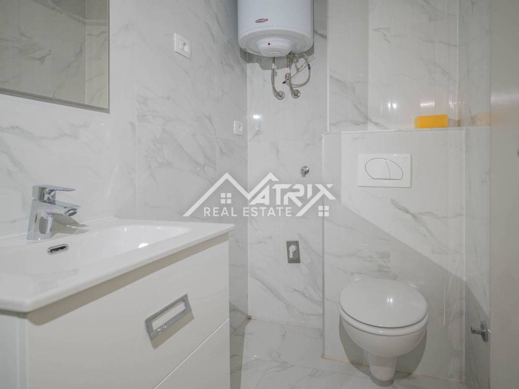High-quality materials have been used, including modern PVC joinery, elegant ceramics, and stone window sills. The apartment is equipped with air conditioning, security doors, all necessary utilities, and also comes with a private parking space.