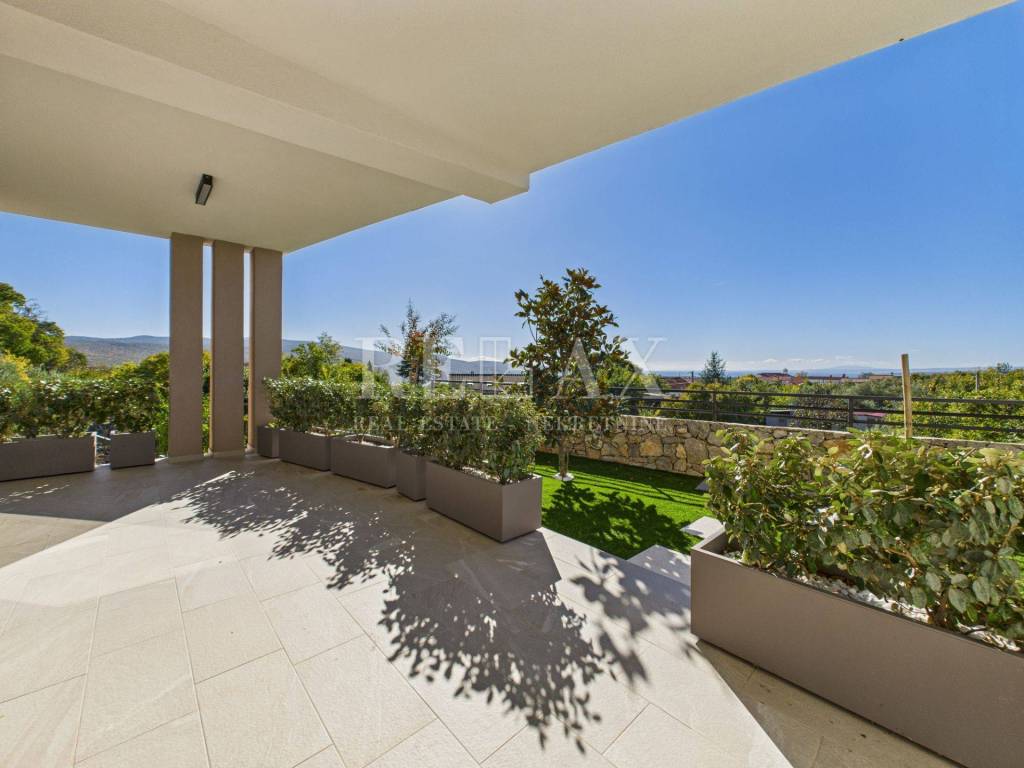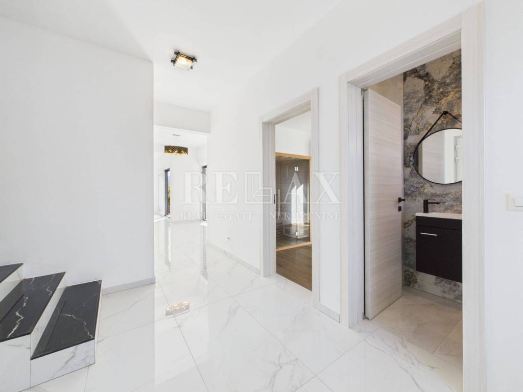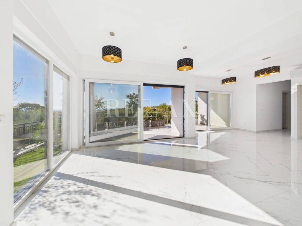 In the quiet area of the village Kornić on the island of Krk, a luxurious villa with a view of the Punat Bay is situated, only 1.4 km from the sea and 1 km from the town center. This elegant new build from 2025 spans 200 m² of living space and was constructed with a focus on comfort, modern technology, and luxury.