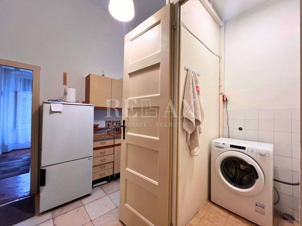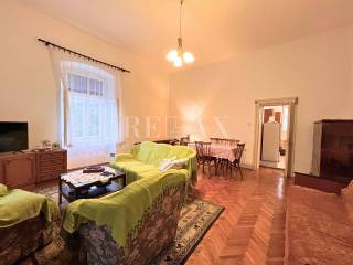 The apartment is south-facing, with a view of the townscape, ensuring an abundance of natural light throughout the day. Although it doesn't come with a private parking space, its exceptional location allows for easy public parking in front of the building. The apartment is sold furnished and requires some renovation, offering the new owner the opportunity to personalize it according to their preferences and needs.