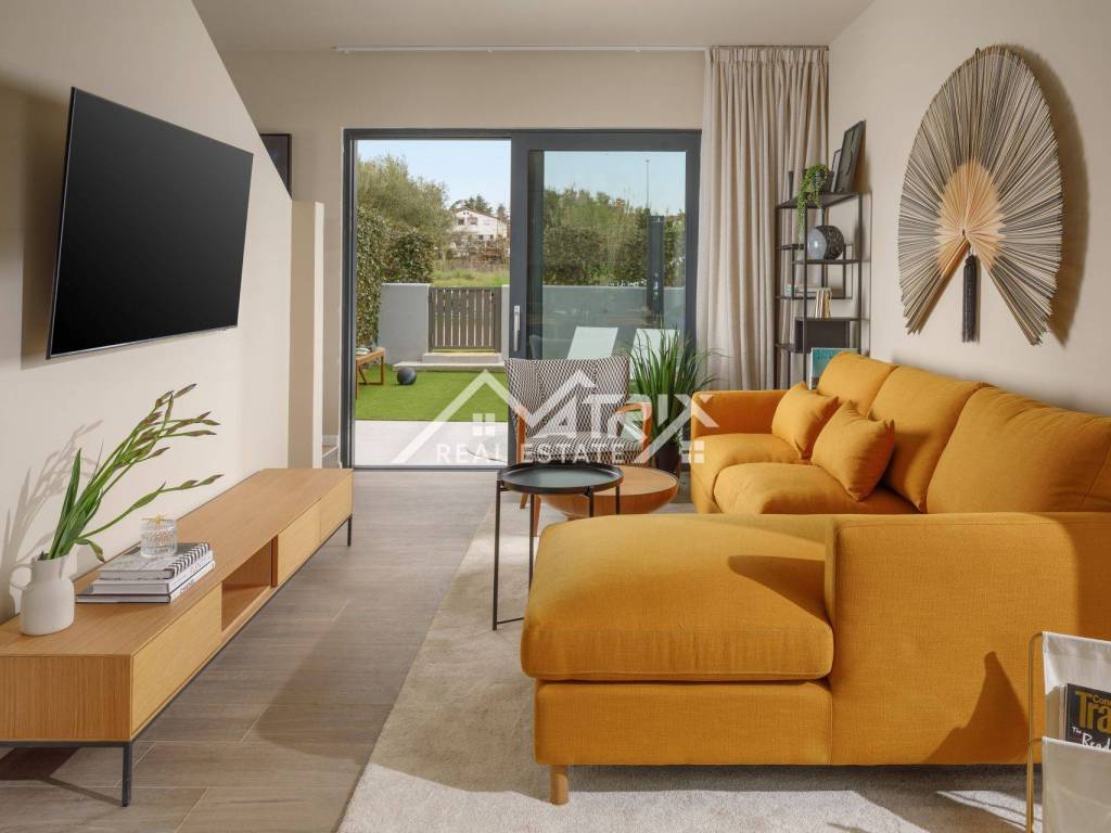 Hiša je popolnoma opremljena v modernem slogu, z visokokakovostnimi materiali in zaključki. Prodaja se v celoti opremljena in je pripravljena za takojšnjo vselitev. Zunanji prostor je zasnovan za sprostitev in uživanje v mediteranskem podnebju.
