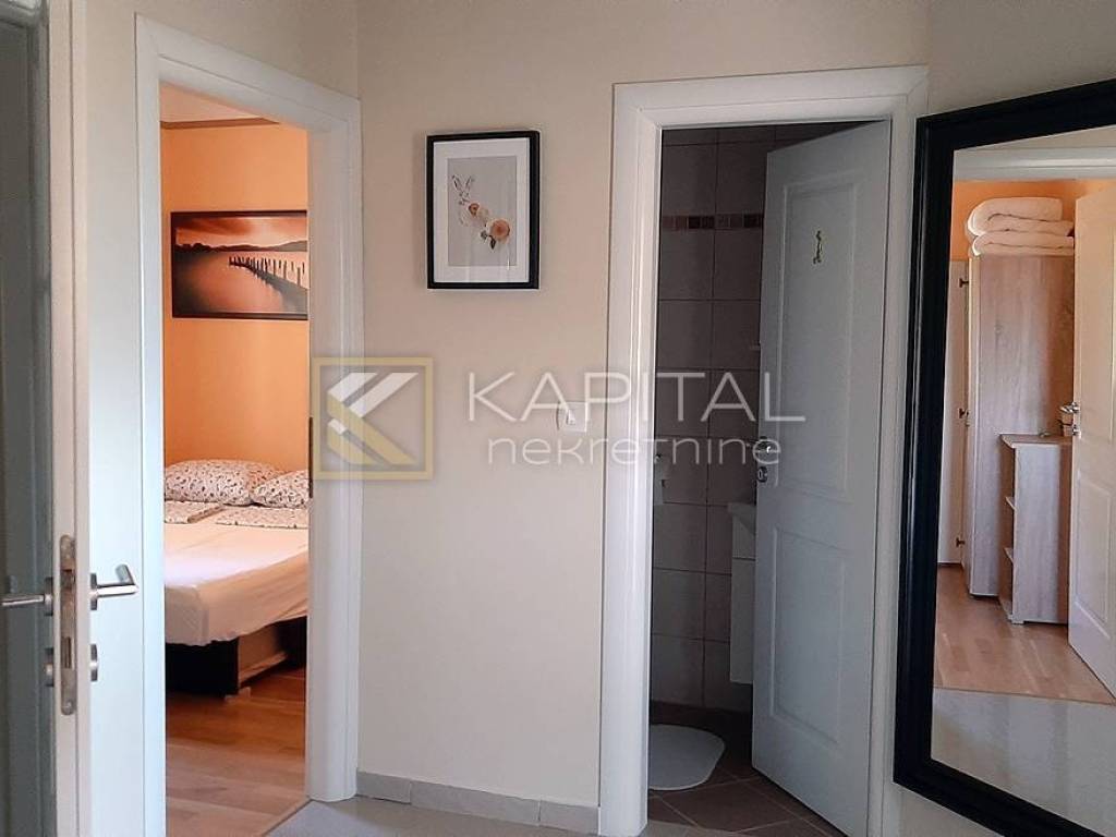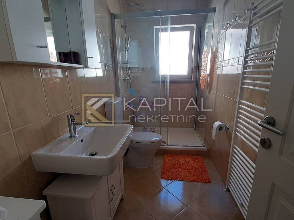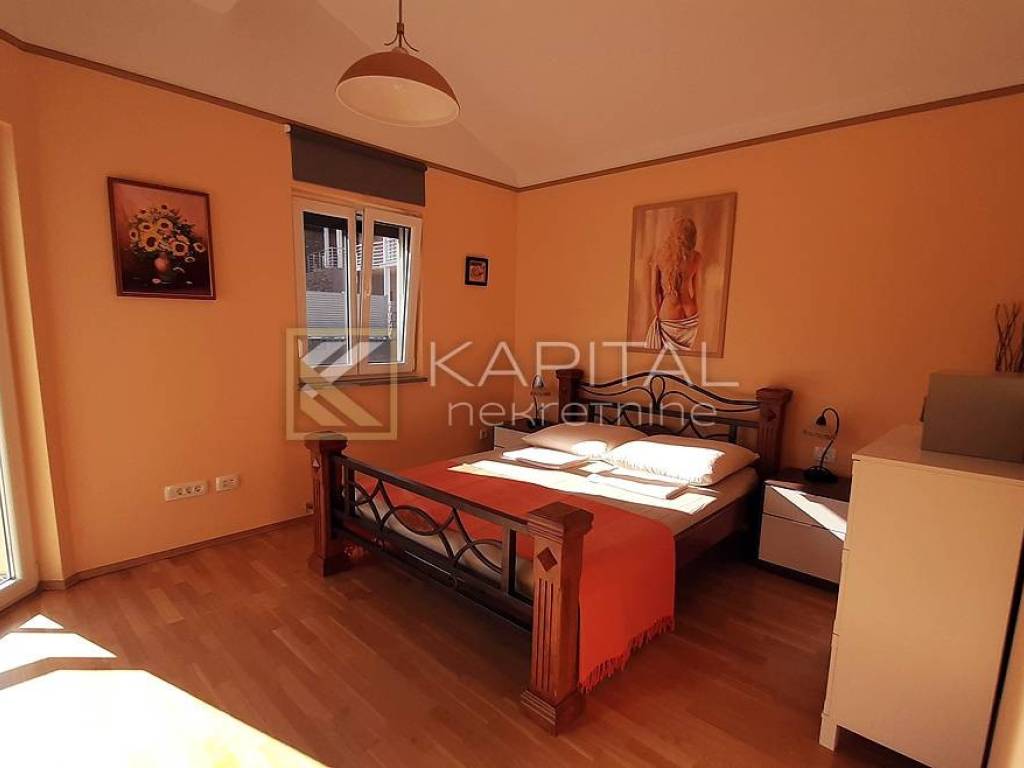 Lovran, a house of 500 m2 consisting of a basement, ground floor and first floor. It is designed as an apartment for tourist rental. In the basement is a studio apartment with a large dining room and in the second part another apartment with a bedroom and living room with a total area of 160 m2. On the ground floor there are two apartments of 110 m2 and 105 m2. Each has two bedrooms and a living room and a large terrace. Upstairs is a two-level three-bedroom apartment of 115 m2. The house has a beautifully landscaped garden, located in a quiet location. For all information call 091 / 450-5150