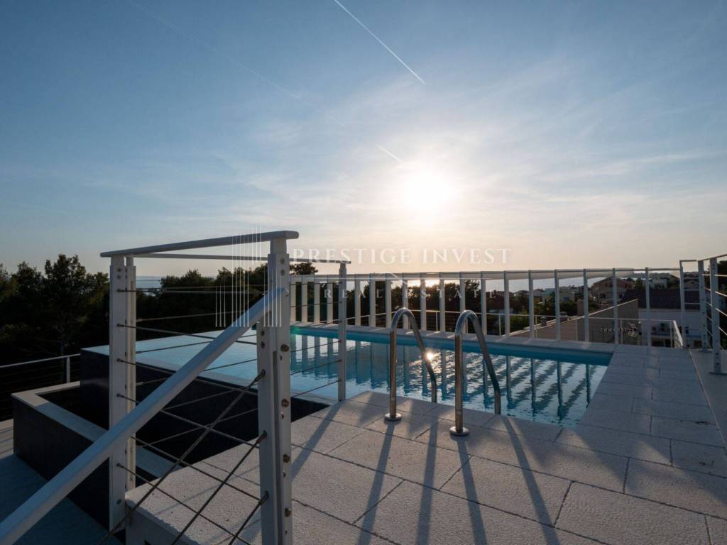 For sale is a luxurious two-story penthouse S3, located on the first and second floors of a detached building. The building was built to the highest standards and contains three spacious apartments, each with its own entrance. The penthouse has its own pool on the roof terrace and offers a beautiful view of the sea.