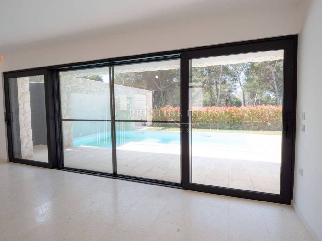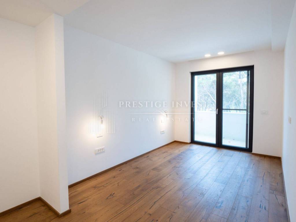 All windows are equipped with retractable insect screens, electrically operated window blinds, individually adjustable heating and central air conditioning in each room, which is distributed to the rooms through ventilation openings directly in the ceiling, there are no unsightly indoor units installed. In the technical room, in addition to the heat pump, an advanced water filtration with a Zodiac brand softener has been installed for each apartment separately.