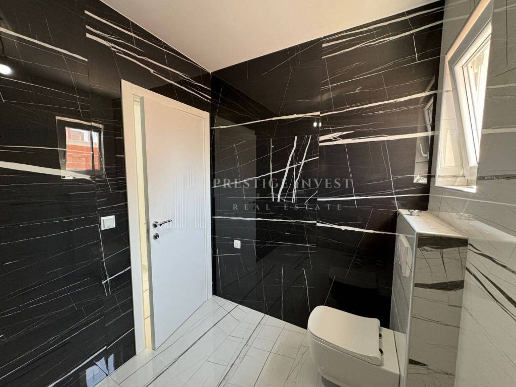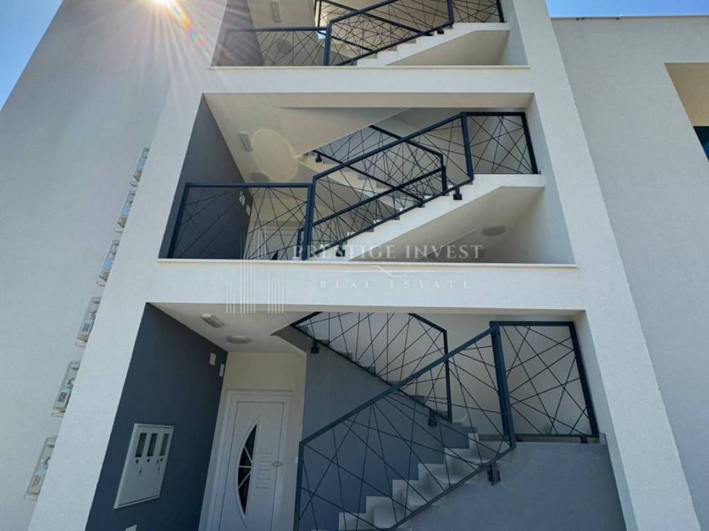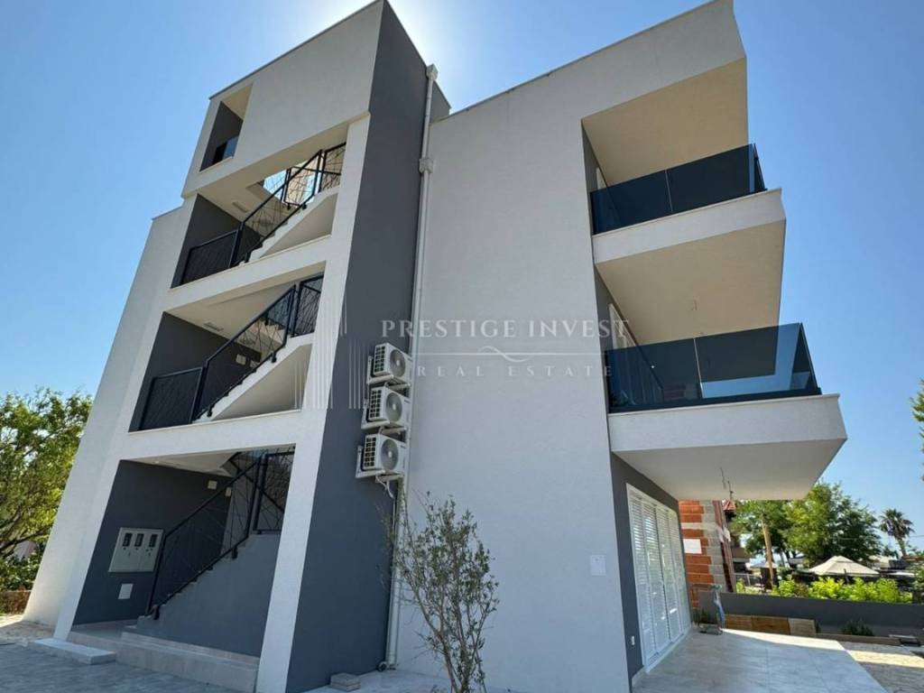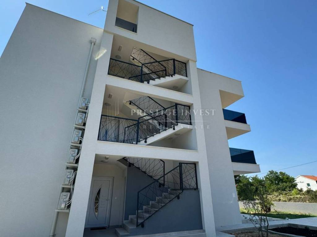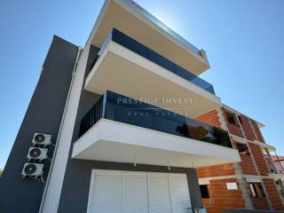For sale is a luxurious apartment with a roof terrace of 45 m2 in the very center of the island of Vir, only 80 meters from the sea. The apartment is located on the first floor of a residential building that has a total of three residential units. The apartment consists of a spacious living room with kitchen and dining room, two spacious bedrooms, bathroom, storage room, and a covered terrace of 15 m2, as well as a roof terrace of 45 m2. The apartment also has two outdoor parking spaces.