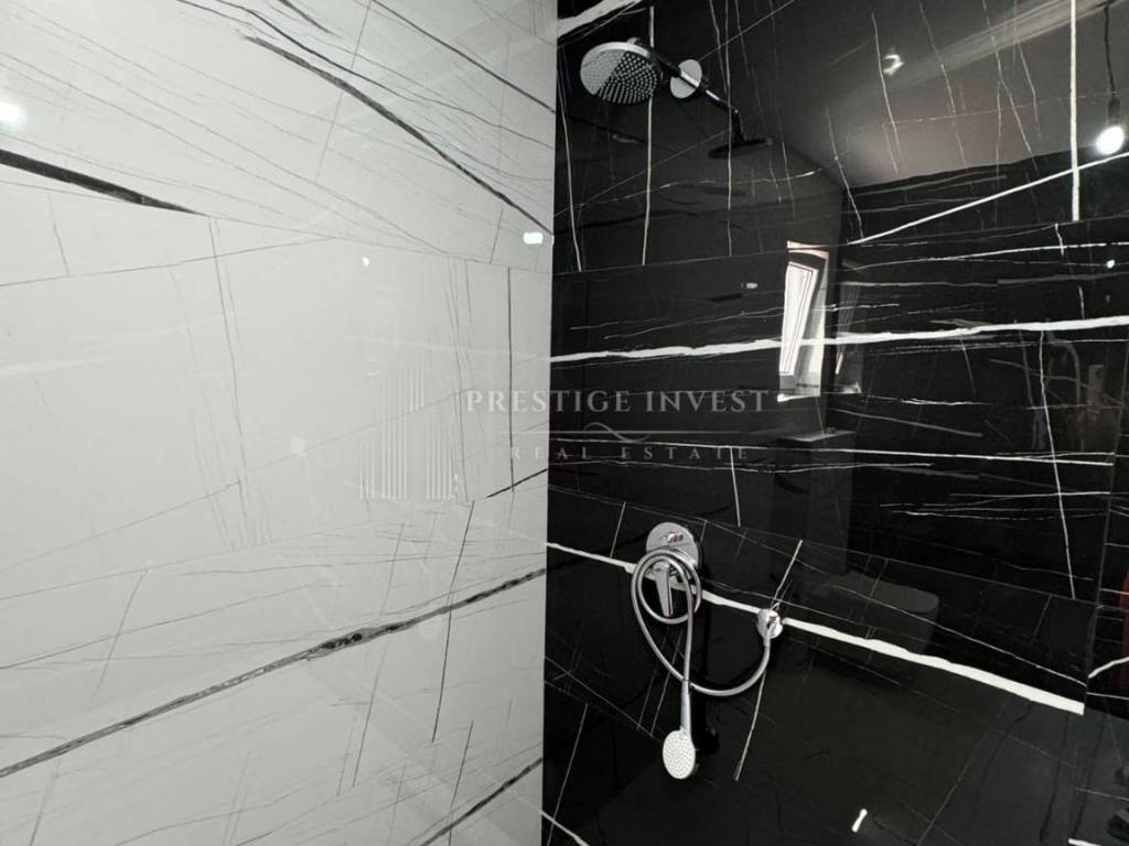 The bathroom is stylishly furnished with underfloor heating, and high-quality sanitary ware is used.