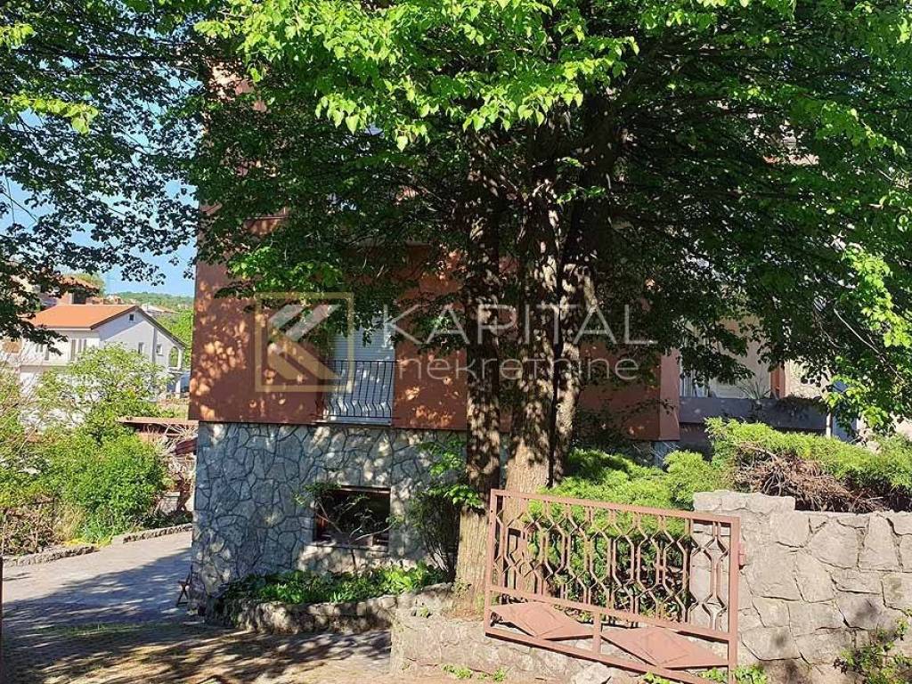 Kastav, a detached house located in a quiet location in the neighborhood of family houses. The area of the living space is 200 m2, it is located on a plot of 1,800 m2. It consists of a ground floor and two floors. On the ground floor there is a small apartment of 37 m2, two garages, a summer kitchen, a storage room and a tavern in the basement. The building with summer kitchen, underground tavern and garage is separate from the house, while the second garage is connected to the house. The first and second floors represent a two-story apartment 3S DB, which consists of: entrance hall, living room, kitchen and dining room, study, two bathrooms, toilet, two balconies and a terrace. Area 150 m2. Oil central heating. Proper documentation. For all information, call 091/450-5150