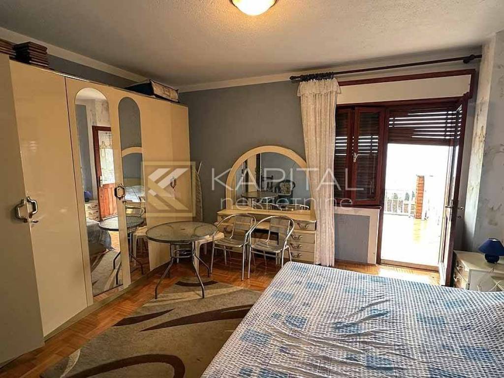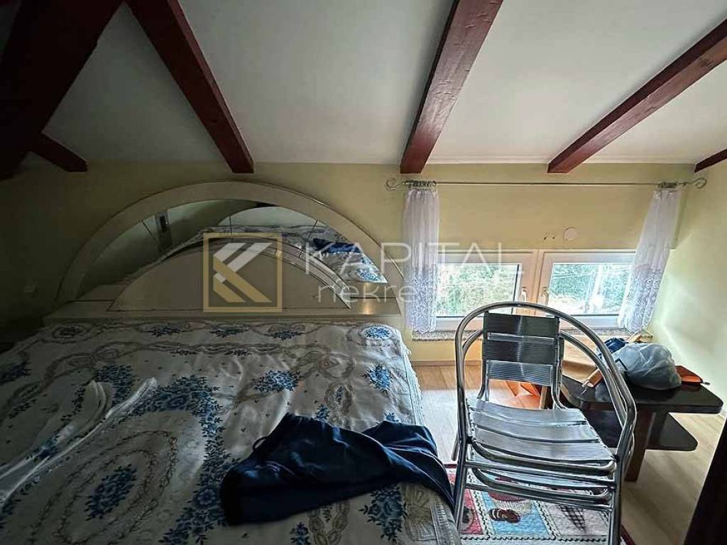 A house for sale in Opatija with 4 apartments with a total area of 250m2. It consists of a two-room apartment with a living room on the ground floor, a garage with a bathroom and a woodshed, two one-room apartments with a living room on the first floor and an apartment in the attic. Behind the house there is a garden and a garden house where electricity and water have been installed. For all information, call