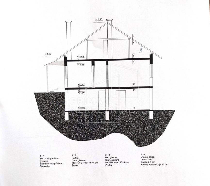 Sastoji se od suterena i visokog prizemlja.