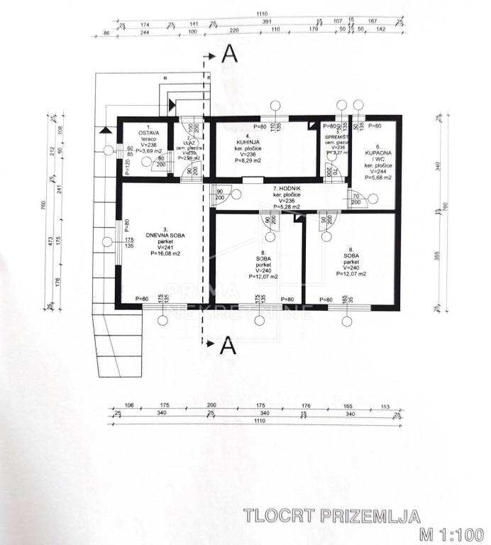 Tlocrtna površina kuće je 85 m2.