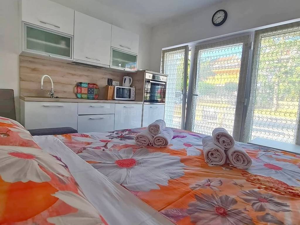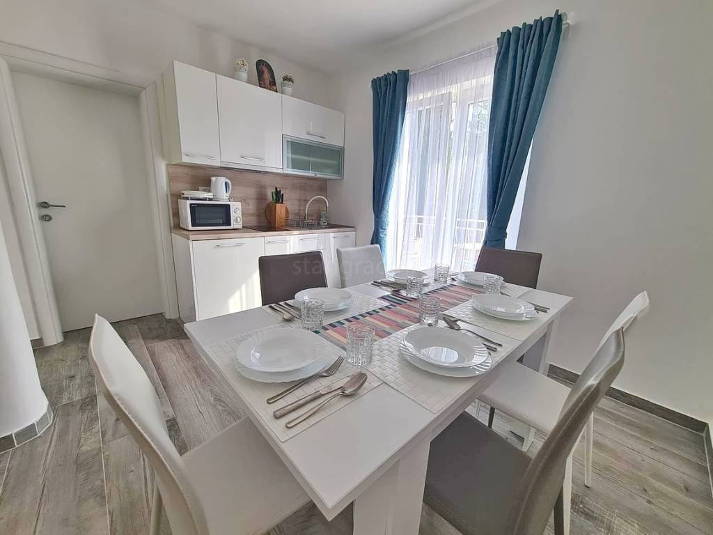Structurally, it is a detached multi-story house, solidly built and arranged over three floors connected by an internal staircase. The house comprises five separate apartments with individual entrances, covering a total area of 450 m². In the basement, there is a spacious two-bedroom apartment with a living room that requires some adaptation. The ground floor features two studio apartments, one of which has a terrace, and a one-bedroom apartment with access to a large terrace. On the first floor, there is a large apartment consisting of a living room, kitchen with dining area, four bedrooms, two bathrooms, and a large terrace, which can be divided into two separate living units. The interior spaces of the house are particularly well-maintained and fully equipped with all necessary technical devices and high-quality furniture.