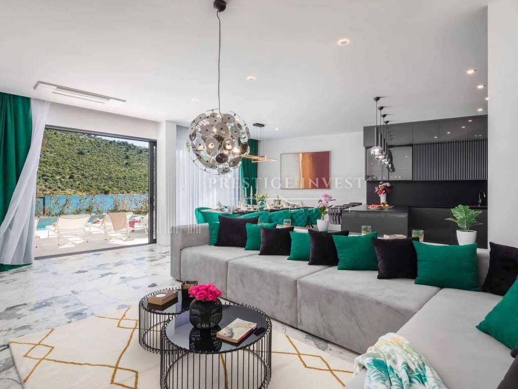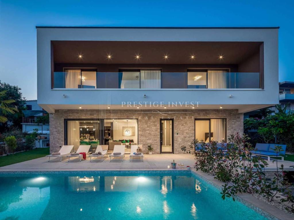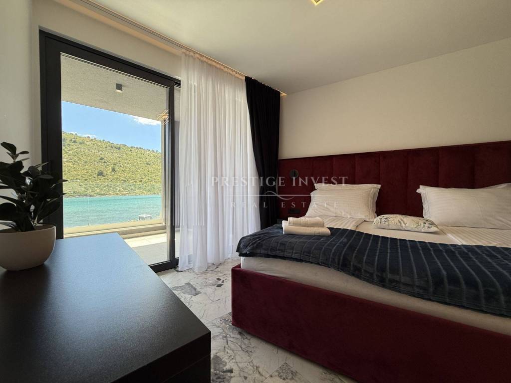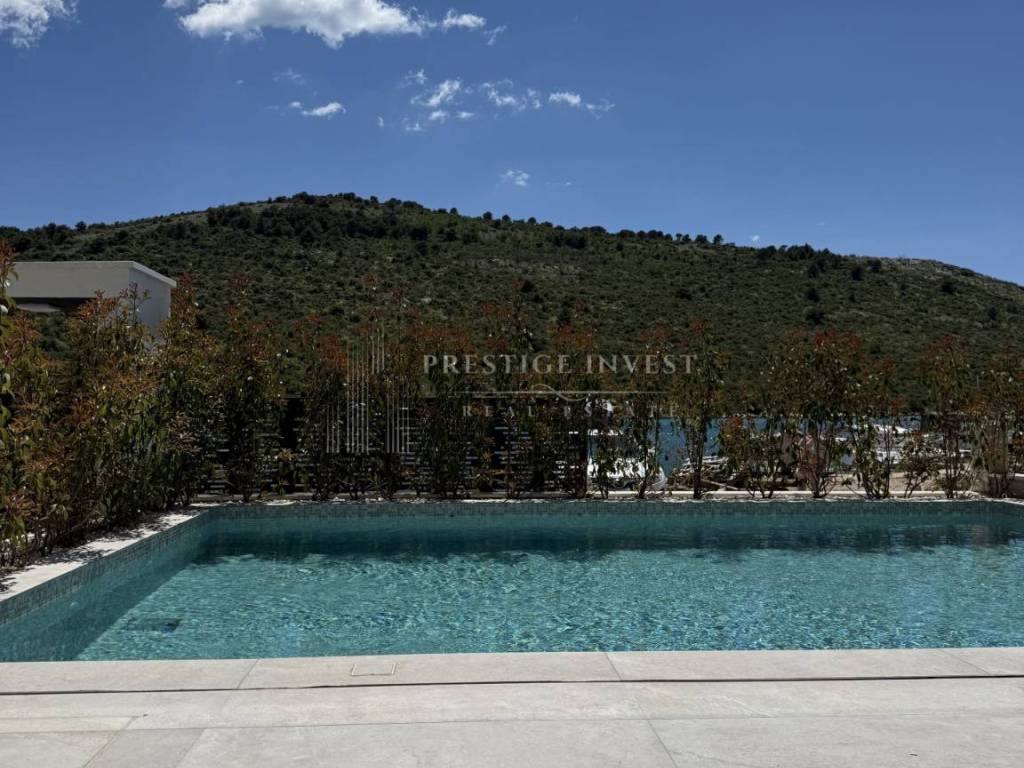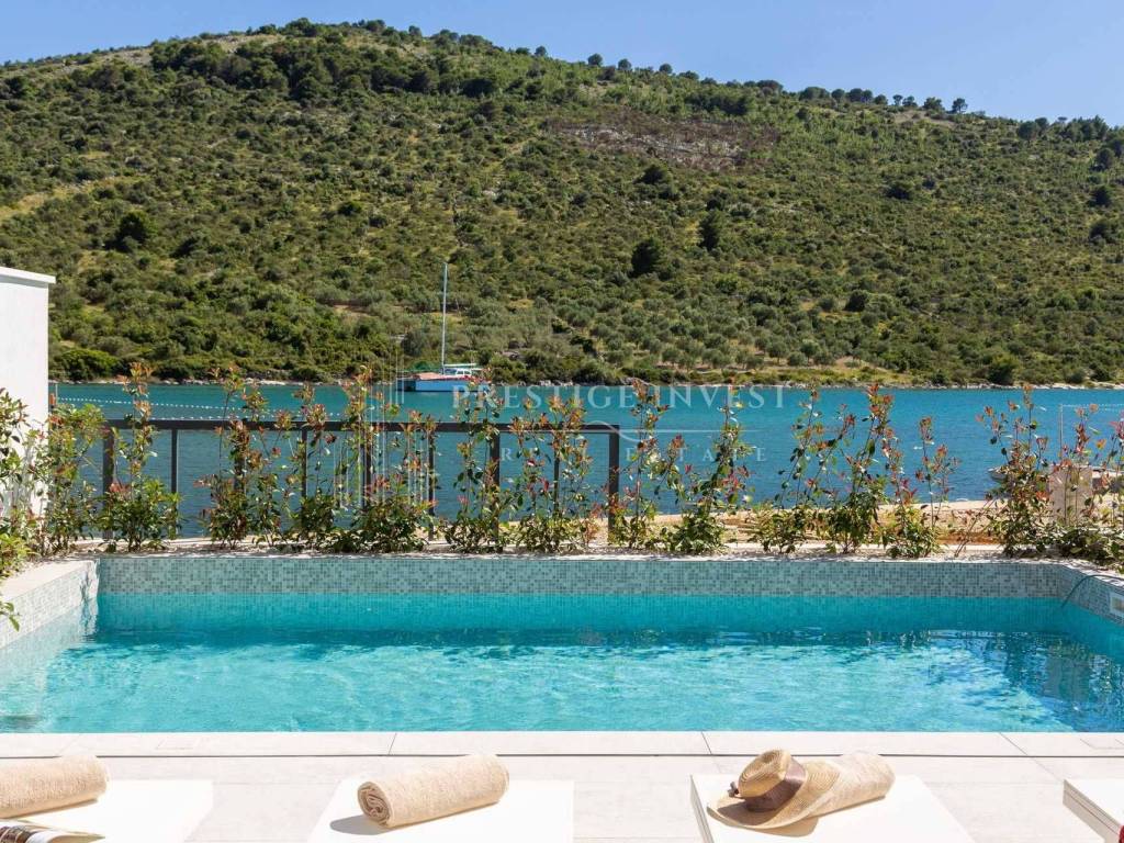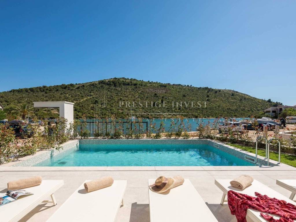 For sale is a newly built villa with a pool located in the first row by the sea near Rogoznica.