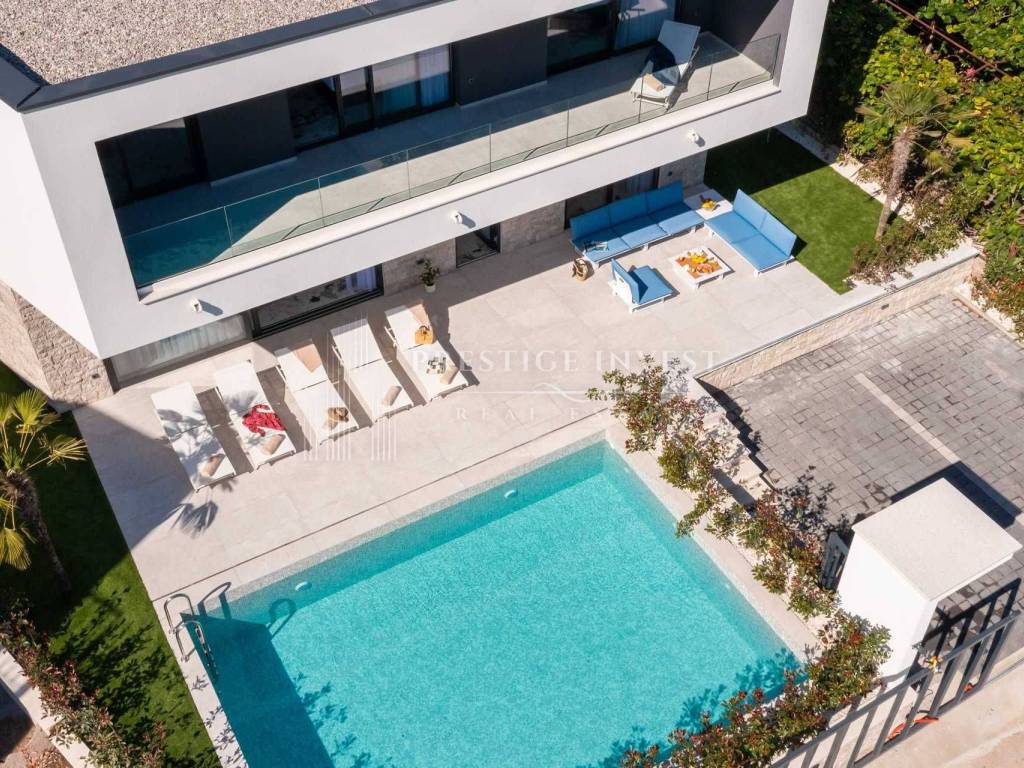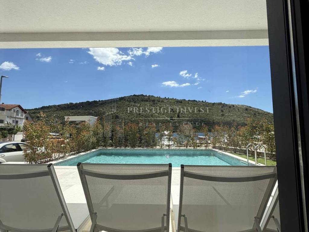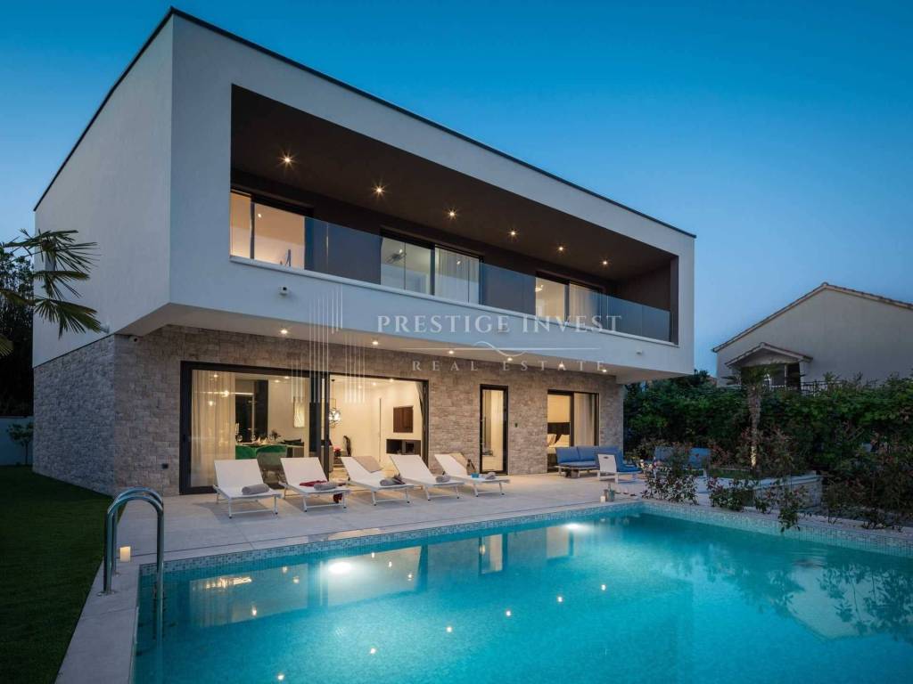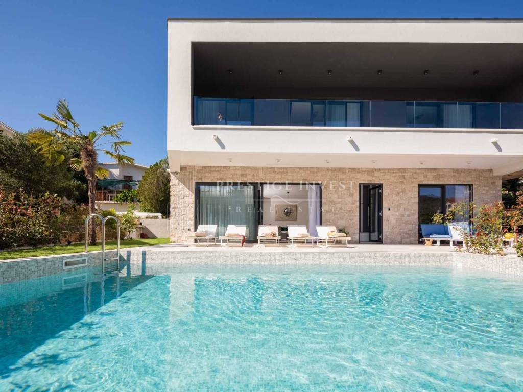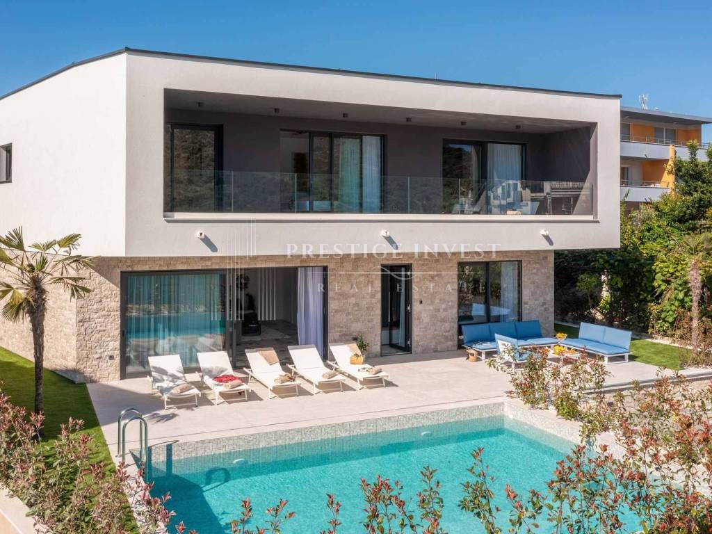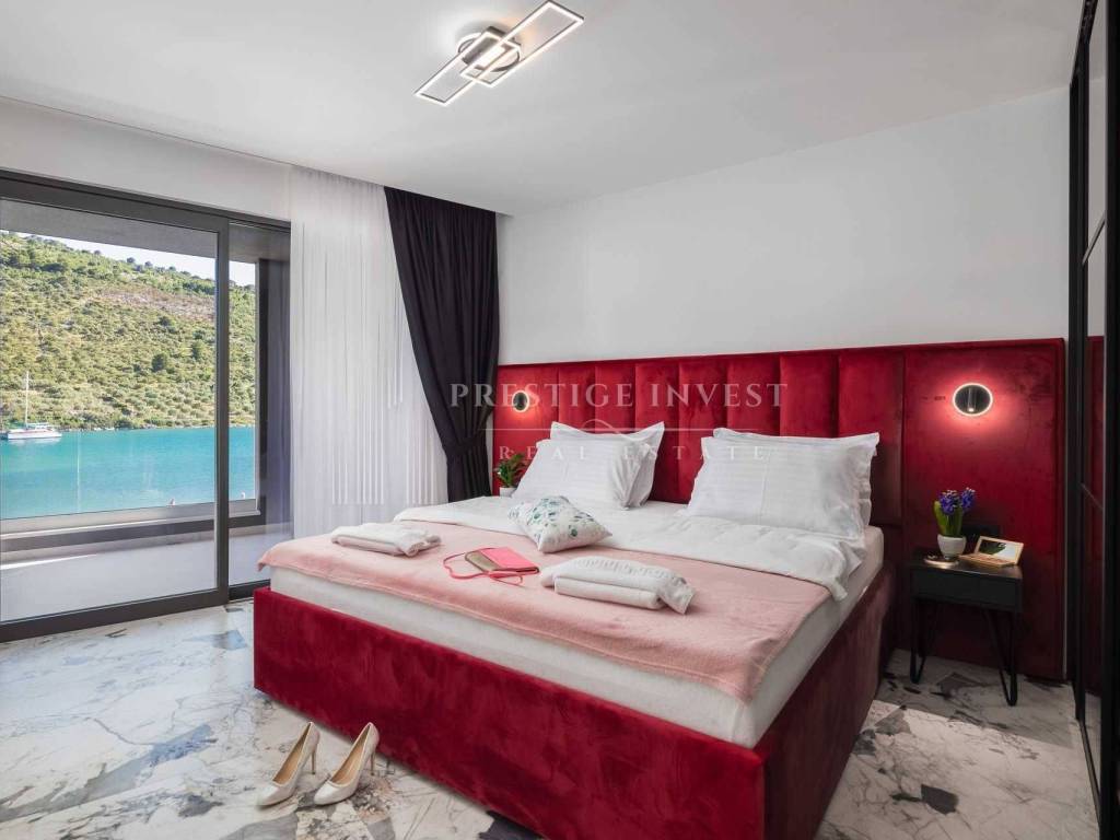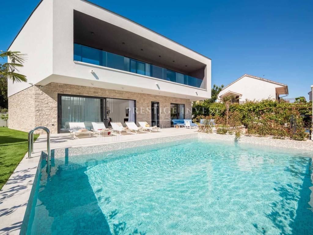 For sale is a newly built villa with a pool located in the first row by the sea near Rogoznica.
