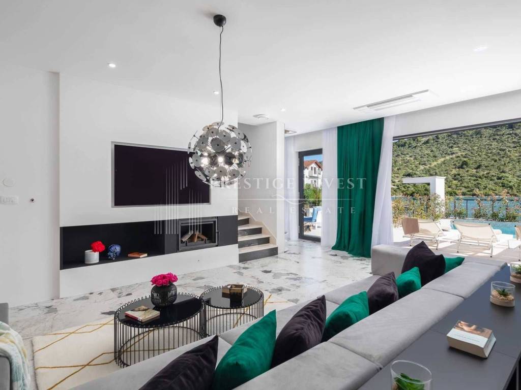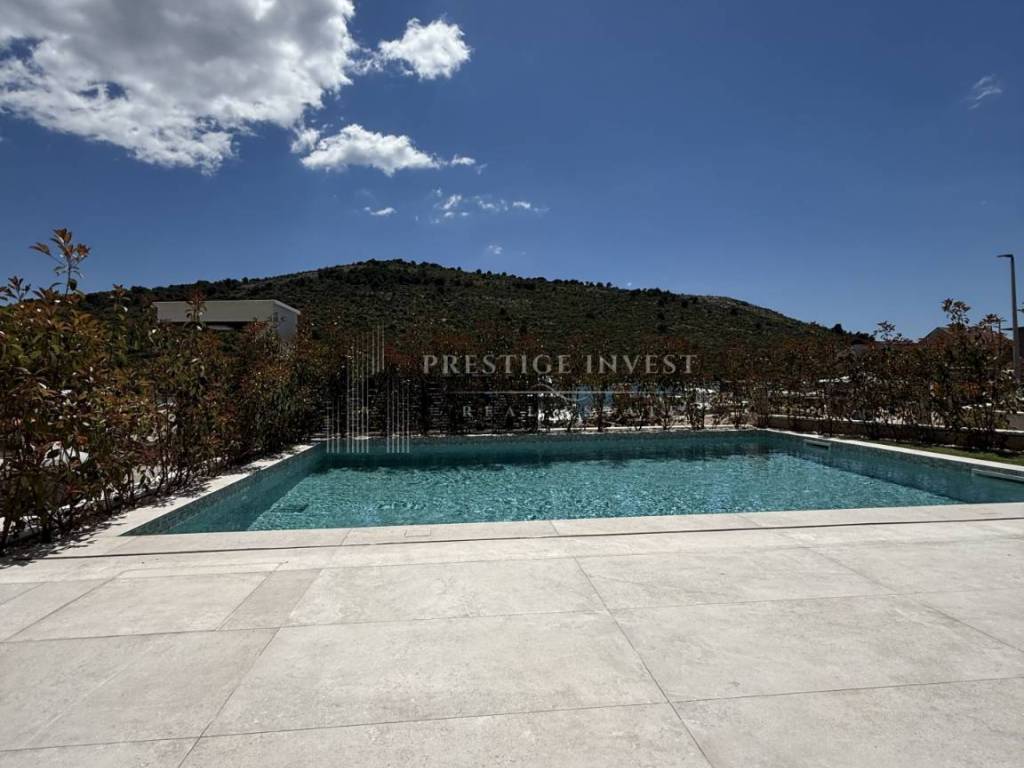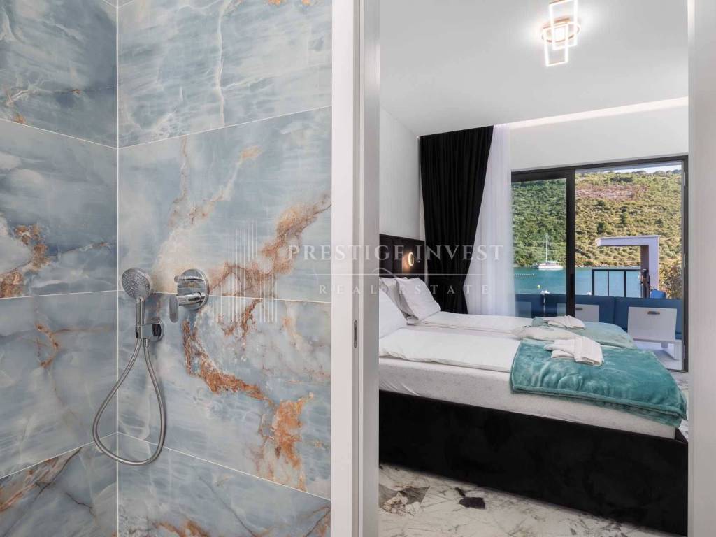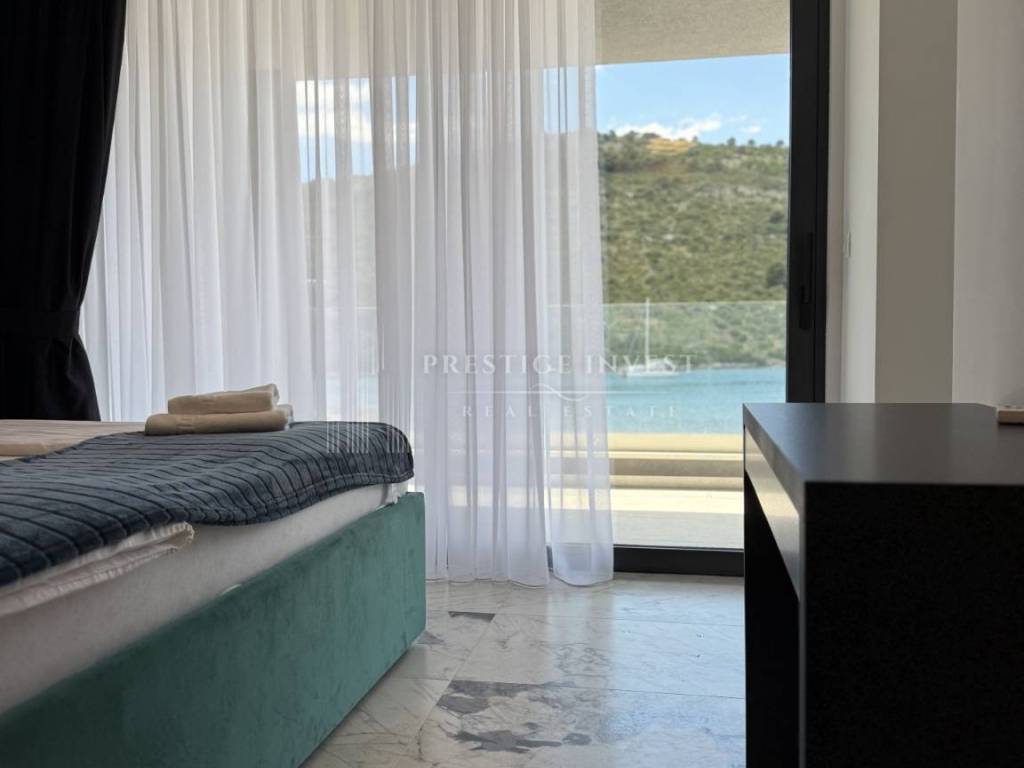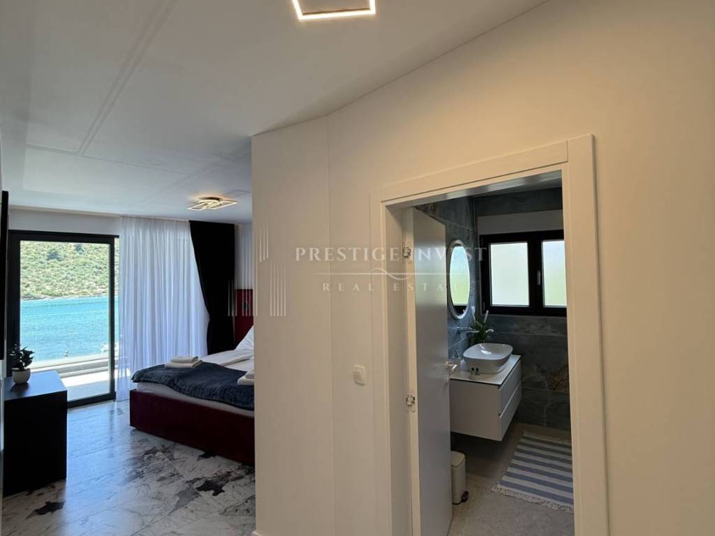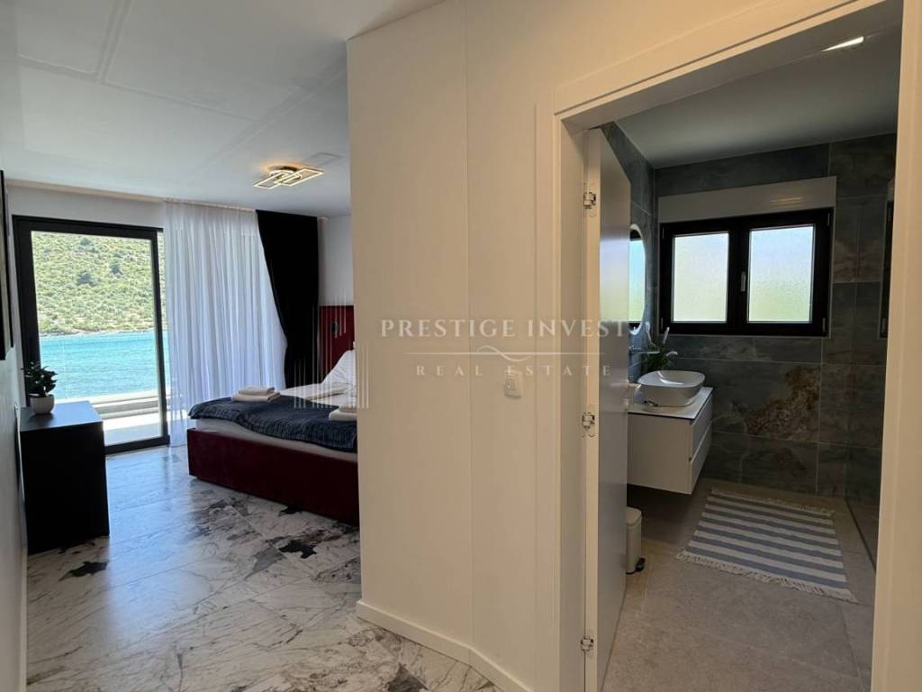 For sale is a newly built villa with a pool located in the first row by the sea near Rogoznica.
