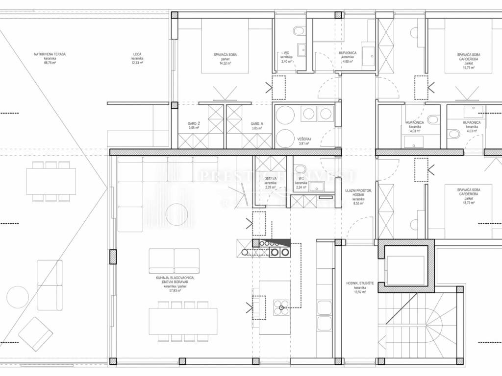 For sale is an exclusive apartment located on the 1st floor of a modern urban villa with a total of three luxury residences, each on a separate floor (ground floor, first and second floor). The property is located in the second row to the sea, only 80 meters from the beach - a two-minute walk.