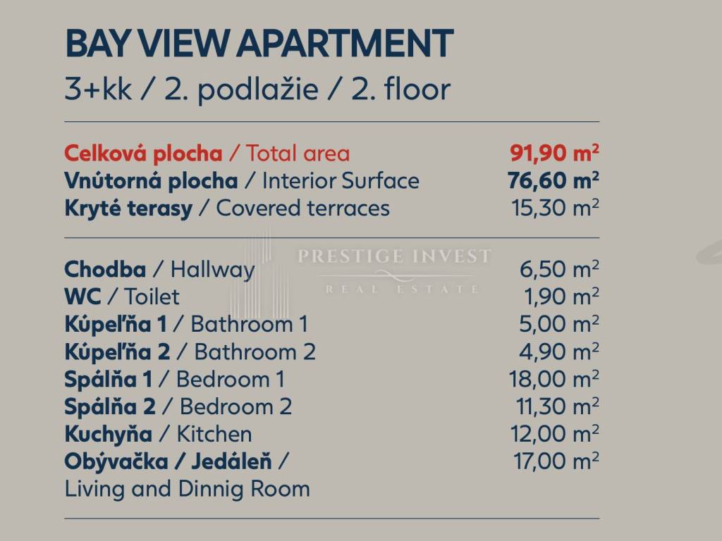 The total area of ​​the apartment is 91.90 m², of which 76.60 m² is interior.