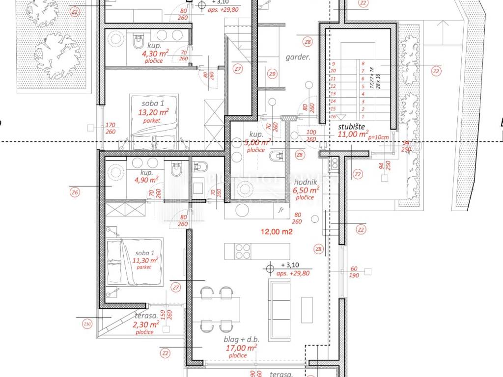 - terraces for uncovered terraces (white Plano stone)