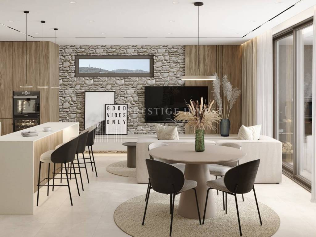 A modern and luxuriously furnished two-bedroom apartment is for sale located on the second floor of an exclusive building in Rogoznica, just 70 meters from the sea and the beach.