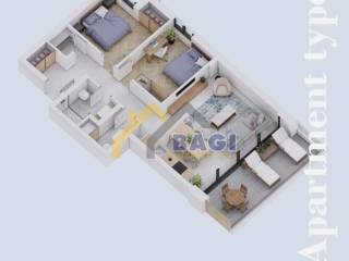 The apartment is located on the upper floor and features a spacious terrace, ideal for relaxation and outdoor enjoyment. The apartment comes with two secured parking spaces. The plot is equipped with three electric vehicle chargers, providing future owners with a practical and environmentally sustainable solution for charging their cars.