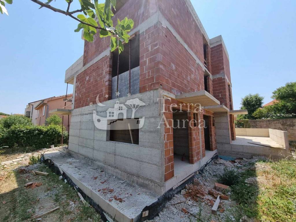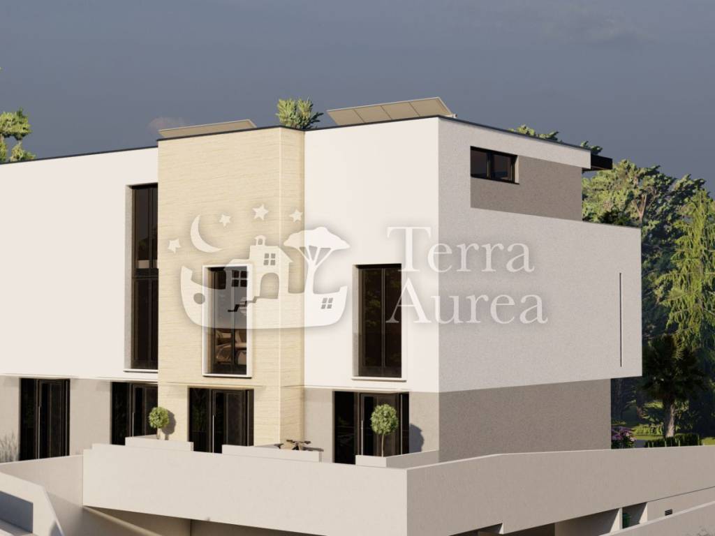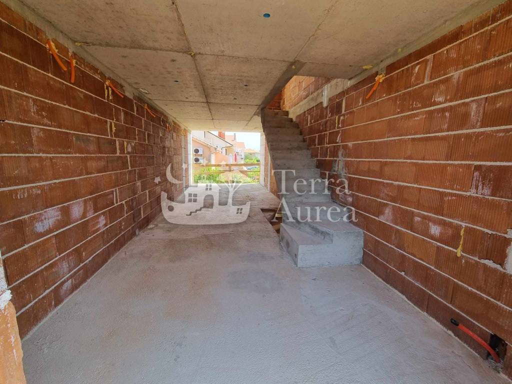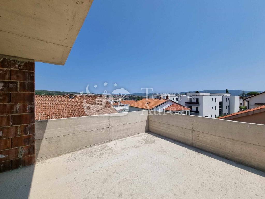Modern, three-room apartment for sale in one of the best locations on the golden island of Krk. It is located in the city of Krk, which is also the center of the island and a city of numerous natural beauties and cultural heritage. The apartment extends over three floors and includes a living area of 89.32 m2. On the ground floor there is an entrance area, a living room with a kitchen and a dining room, a toilet, a staircase and a terrace of 10 m2 with access to the garden where you can enjoy the rays of the sun every day. The first floor includes two bedrooms, a hallway, a bathroom and a balcony. On the third floor there is a gallery with a bathroom and access to a spacious terrace where there is a jacuzzi, which is also a relaxing oasis of this luxury property. Quality materials, top-quality carpentry, ceramics and first-class sanitary ware are used in the construction of the property. The property will have underfloor heating and a heating and cooling system using a fan coil system. This modern property has 2 parking spaces, one in the garage and one in the outdoor parking lot. The property is currently under construction. A very good opportunity to buy a luxury property that is ideally positioned 300 m from the sea, the city center, and all the necessary amenities.
