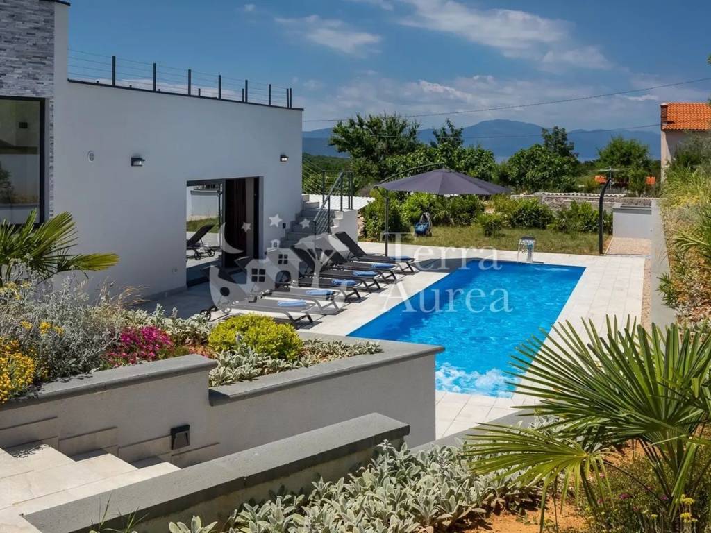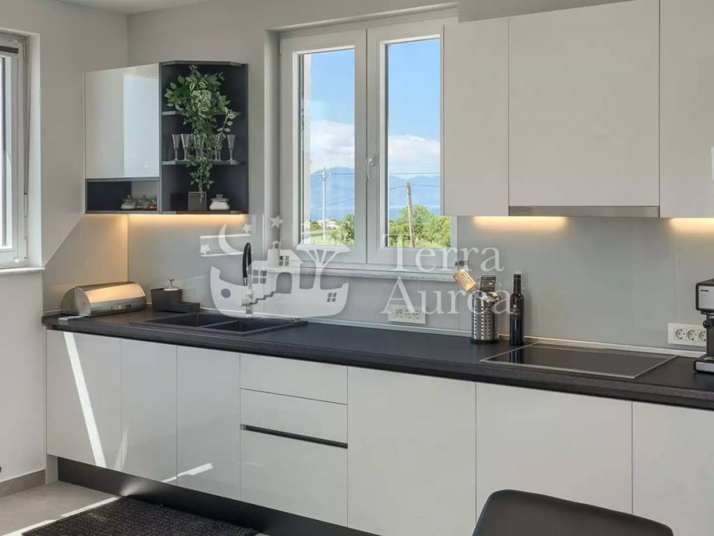 For sale is a modern villa with an area of 163.45 m2, located in a small picturesque place not far from the town of Krk. This beautiful property is located on a spacious plot of 1150 m2 and consists of a ground floor, a mezzanine and a first floor, providing everything you need for a luxurious and comfortable life.