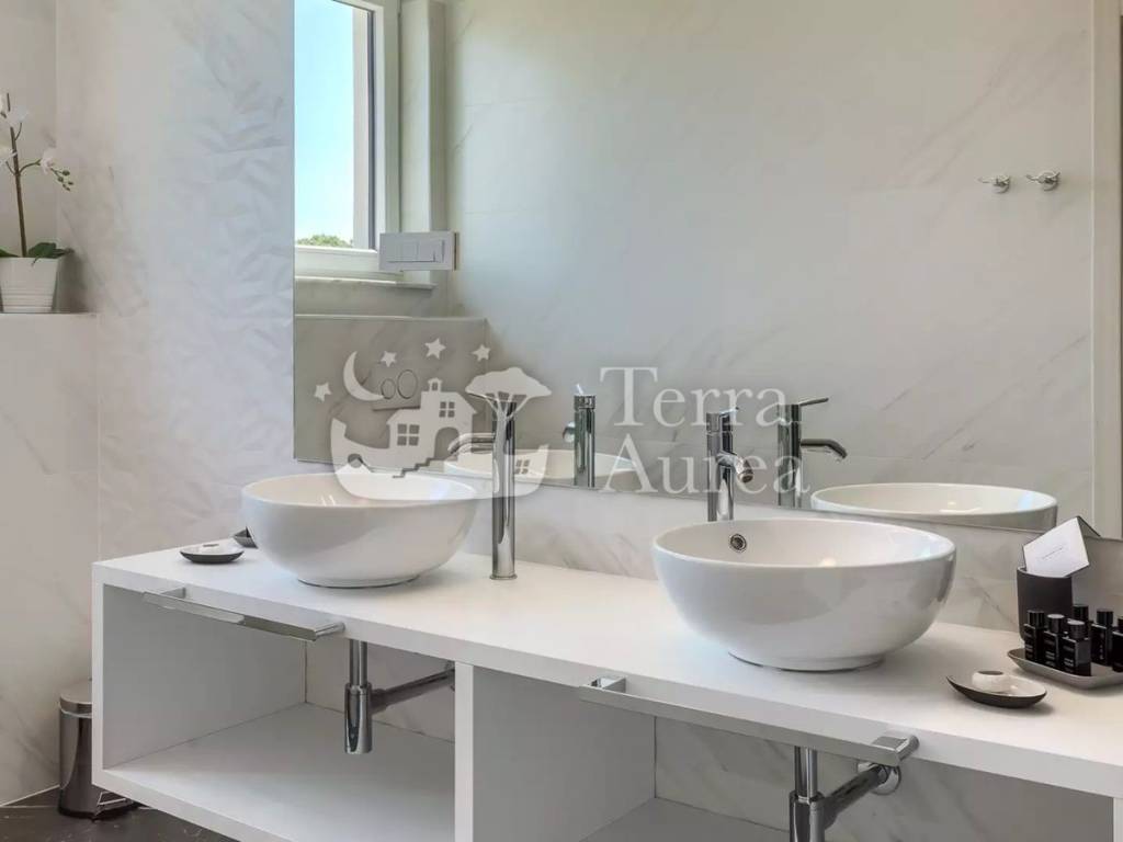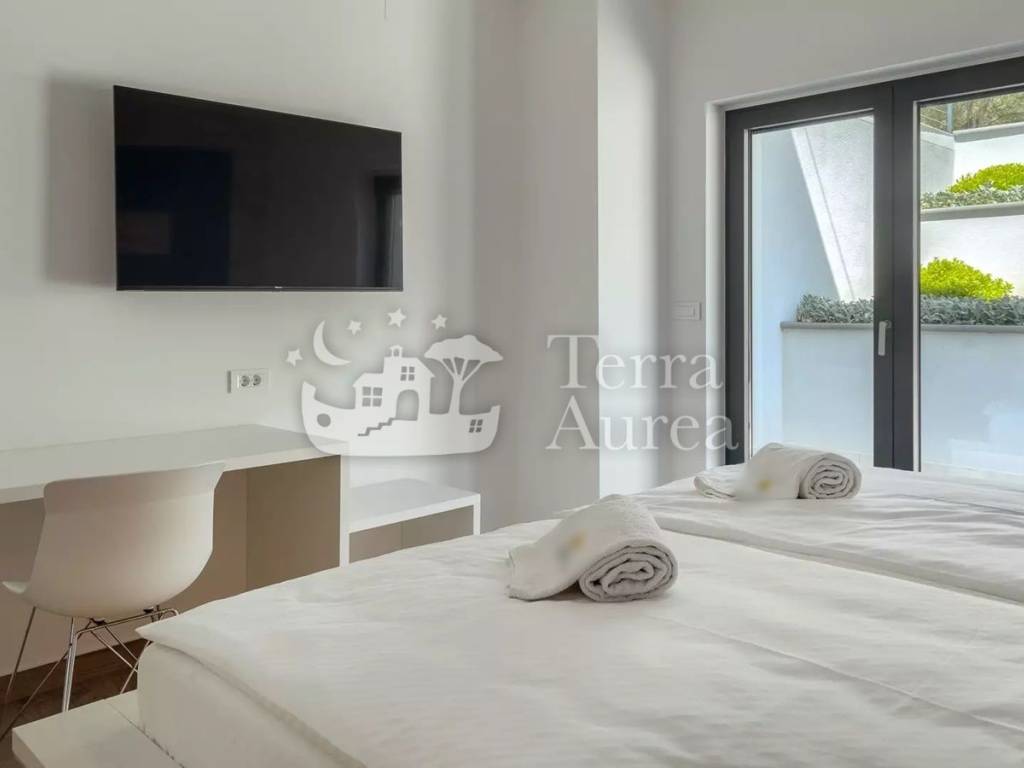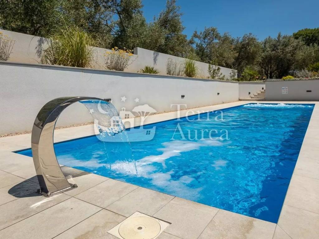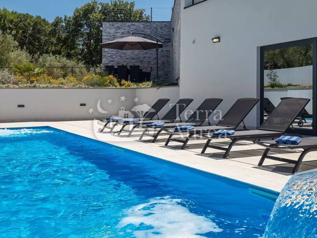 The ground floor of this villa impresses with its space, which includes three spacious bedrooms, two bathrooms, an engine room, a basement and storage areas. The mezzanine floor is reserved for a wellness oasis equipped with a jacuzzi and a small sauna. This space leads to a spacious terrace, ideal for sunbathing, which extends next to the pool with a built-in hydromassage system and a waterfall.