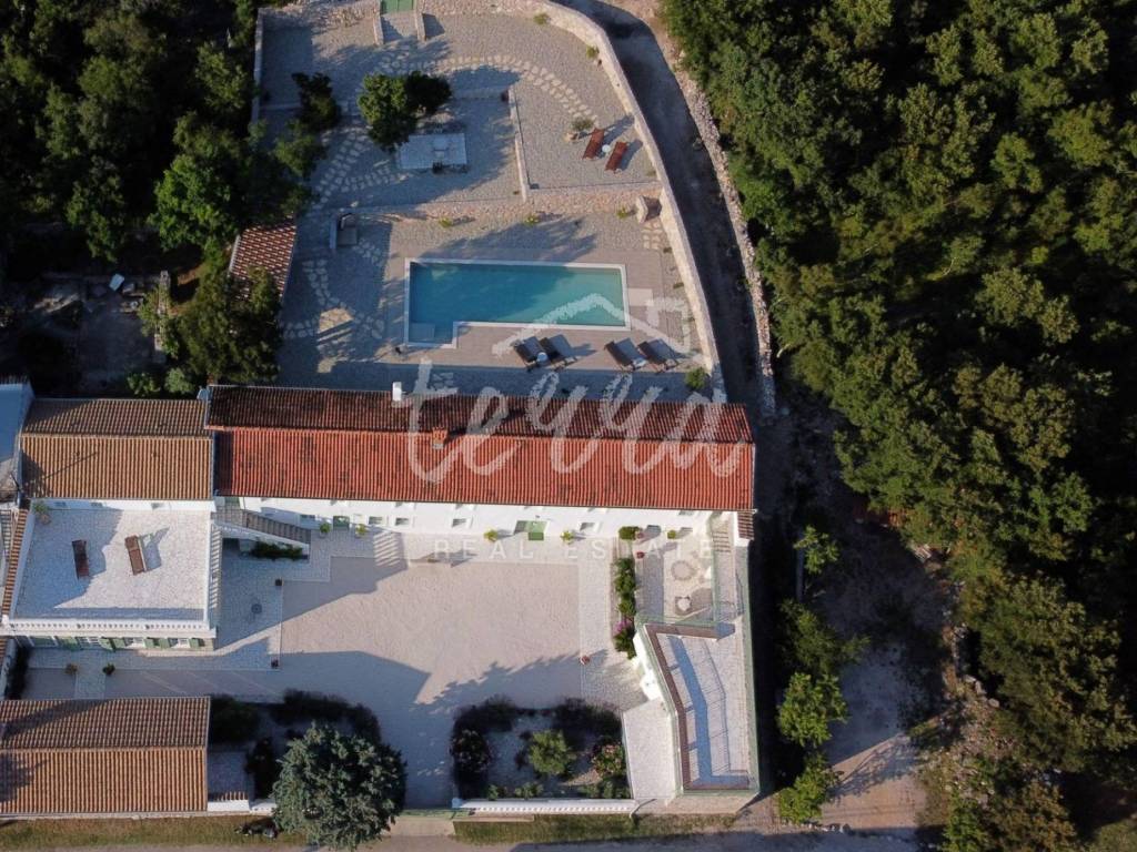 Stancija Smokovo 1873 is a five-star facility. It offers an experience of timeless elegance and style in its four bedrooms and one additional, separate bedroom, a living room with a library and work area, a large lounge spread over 80 m2 with a pool table, two kitchens (one of which is in function during summer time, with a large barbecue fireplace, two gazebos, two beautiful terraces offering a majestic view over the sea and the neighboring islands, a tavern, a cigar bar with a cinema projection utilities, a terrace around the ancient “gušterna”, a water tank from 1880 and a 12m long swimming pool (over 50 m2).