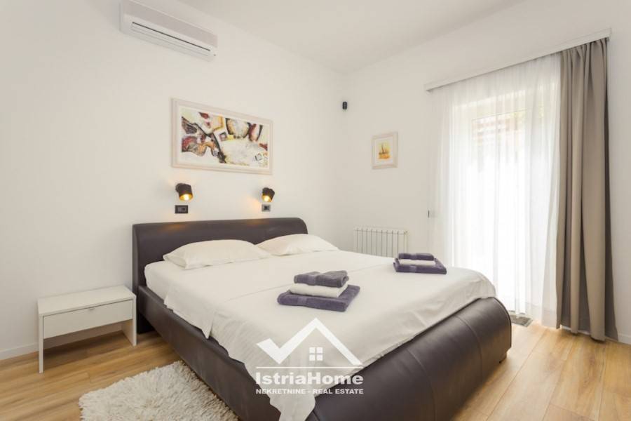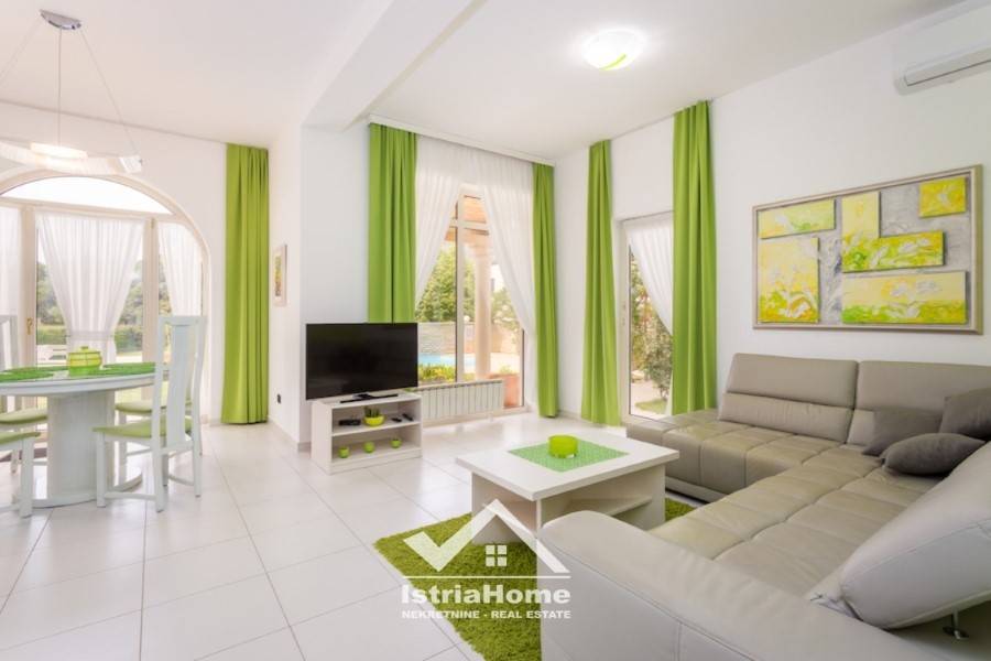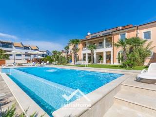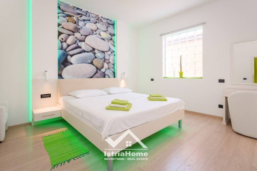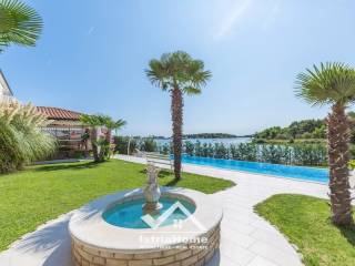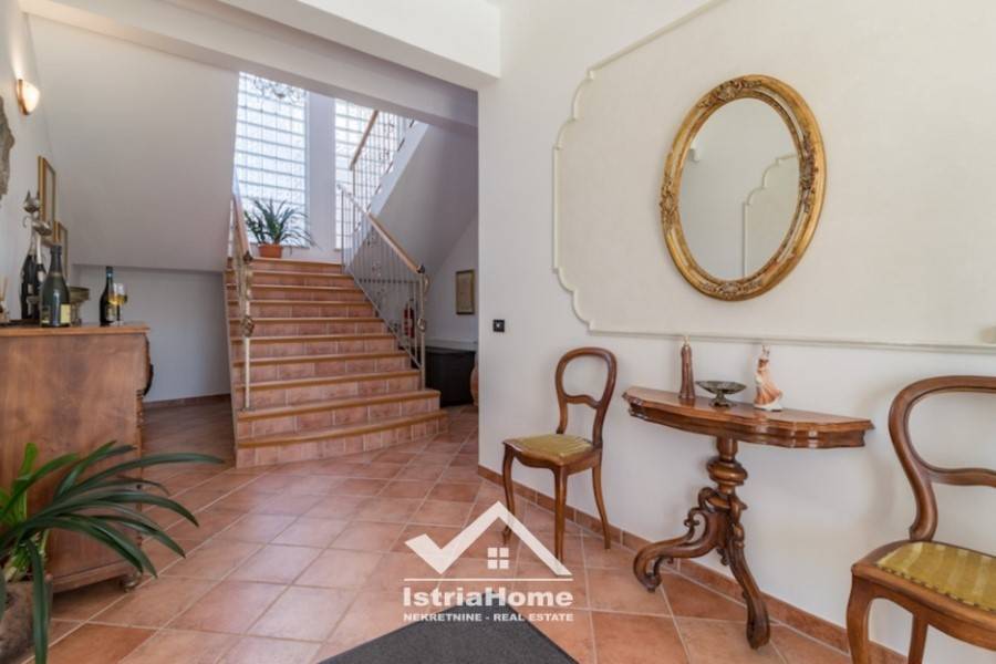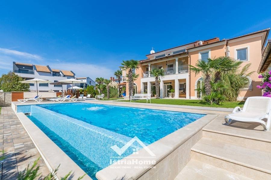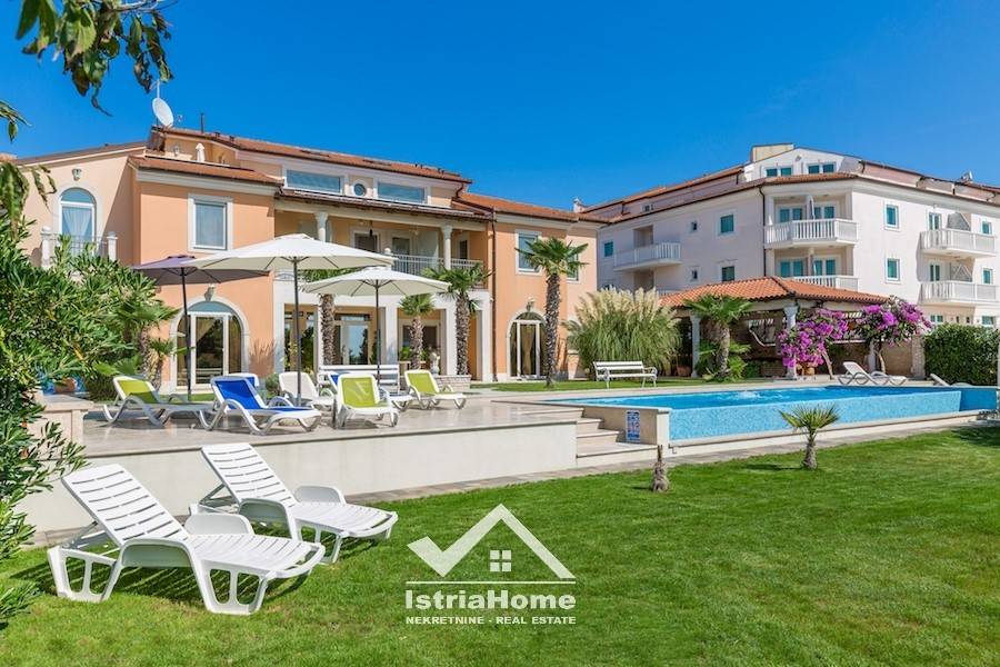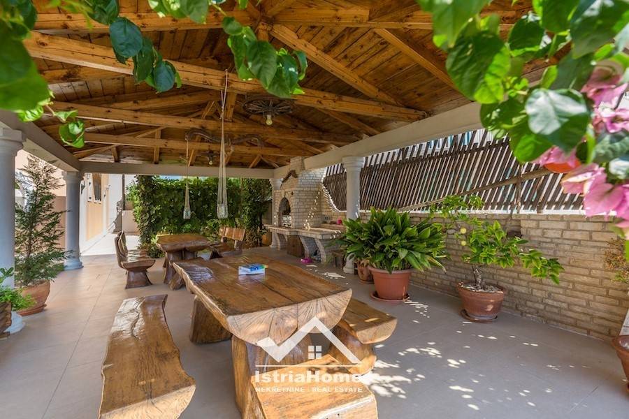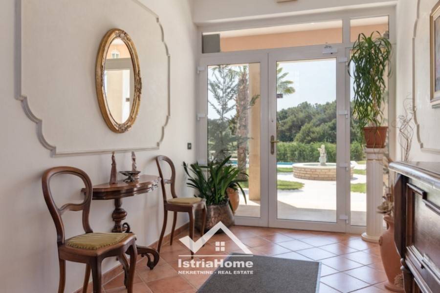 In Medulin, a famous tourist center in the south of the Istrian peninsula, next to the sea and only 700 meters from the beautiful sandy beach Bijeca, there is this spacious villa of 580 m2.