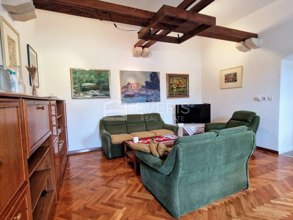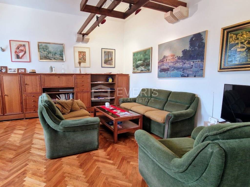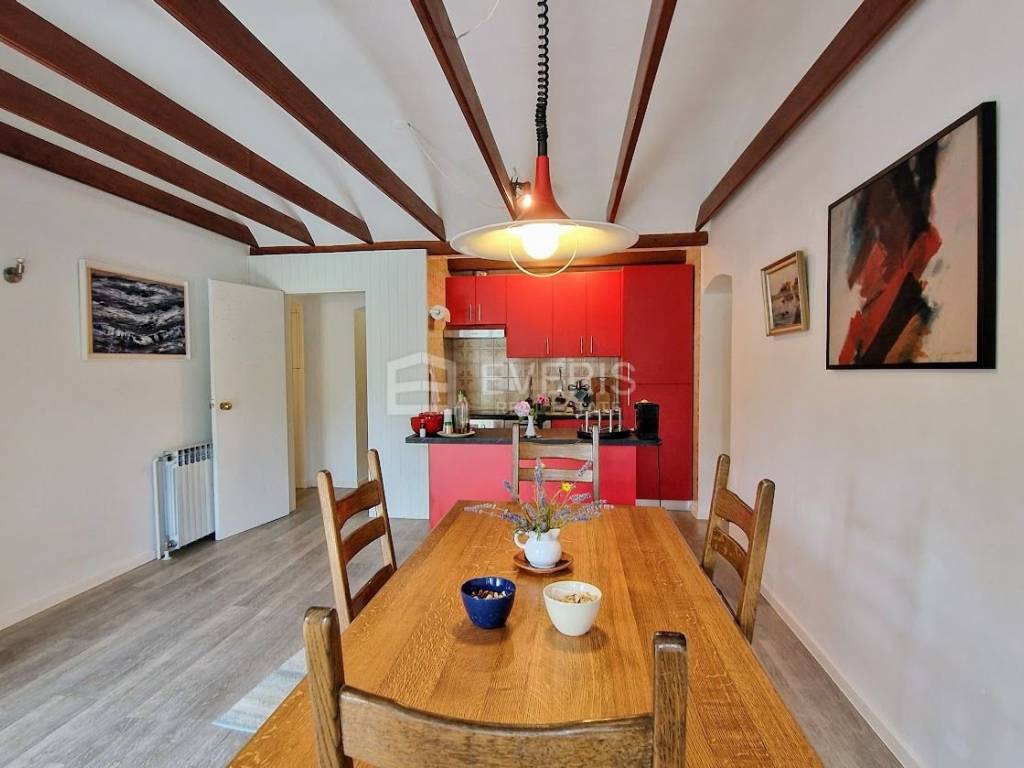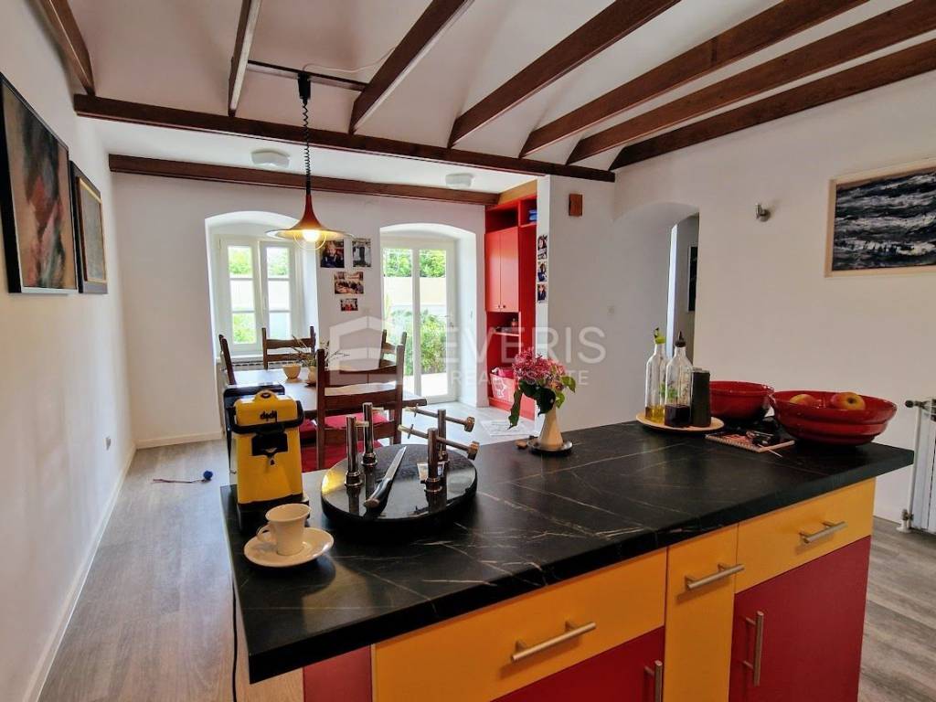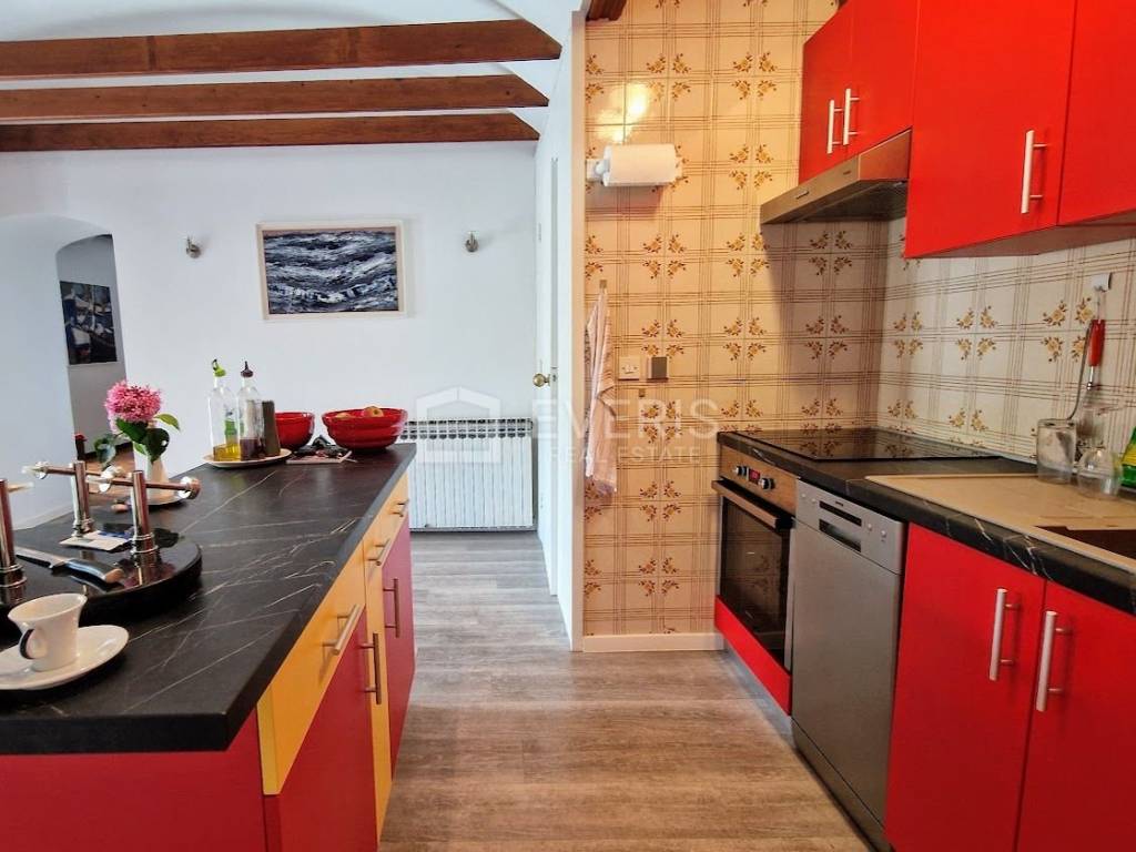 The apartment is sold fully furnished, with a high-quality custom-made kitchen equipped with new appliances. Heating: radiators powered by heating oil.