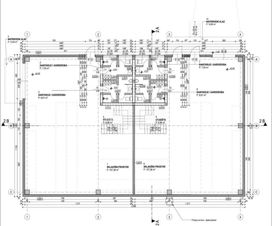 U ponudi je funkcionalan skladišni prostor ukupne površine 400 m2. Skladišni prostori su podijeljeni u dva prostora, svaki po 157 m2.