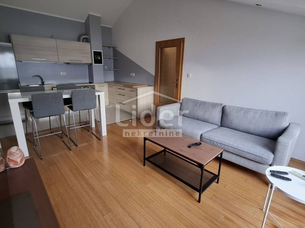 ✨ Apartment DescriptionThe apartment is located on the fourth floor of a residential building and extends through a high attic on the south side, giving it a special warmth and character.It consists of:- a spacious living room with an open-concept kitchen and dining area- a balcony offering a beautiful panoramic view of Kvarner- a bedroom with a built-in wardrobe- a smaller office/bedroom (adaptable as needed)- a bathroom with a toilet- storage in the basementThe apartment is fully equipped and ready to move in.
