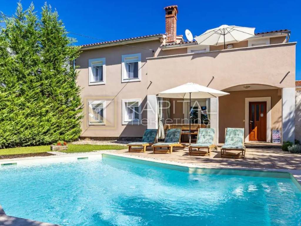 Svetvinčenat - far from the noise and hustle and bustle of the city, this idyllic house is located, which exudes a special charm. The house is of an older date, but was completely renovated in 2018. Concept of the house P 1. On the ground floor there is a spacious living room with a sanitary ăvor, a large terrace that is connected to the pool area. On the first floor there is a sleeping area, a sanitary unit and a balcony. The yard is completely landscaped and fenced. Proper documentation. For all information, call 091/450-5150 or 098/264-783