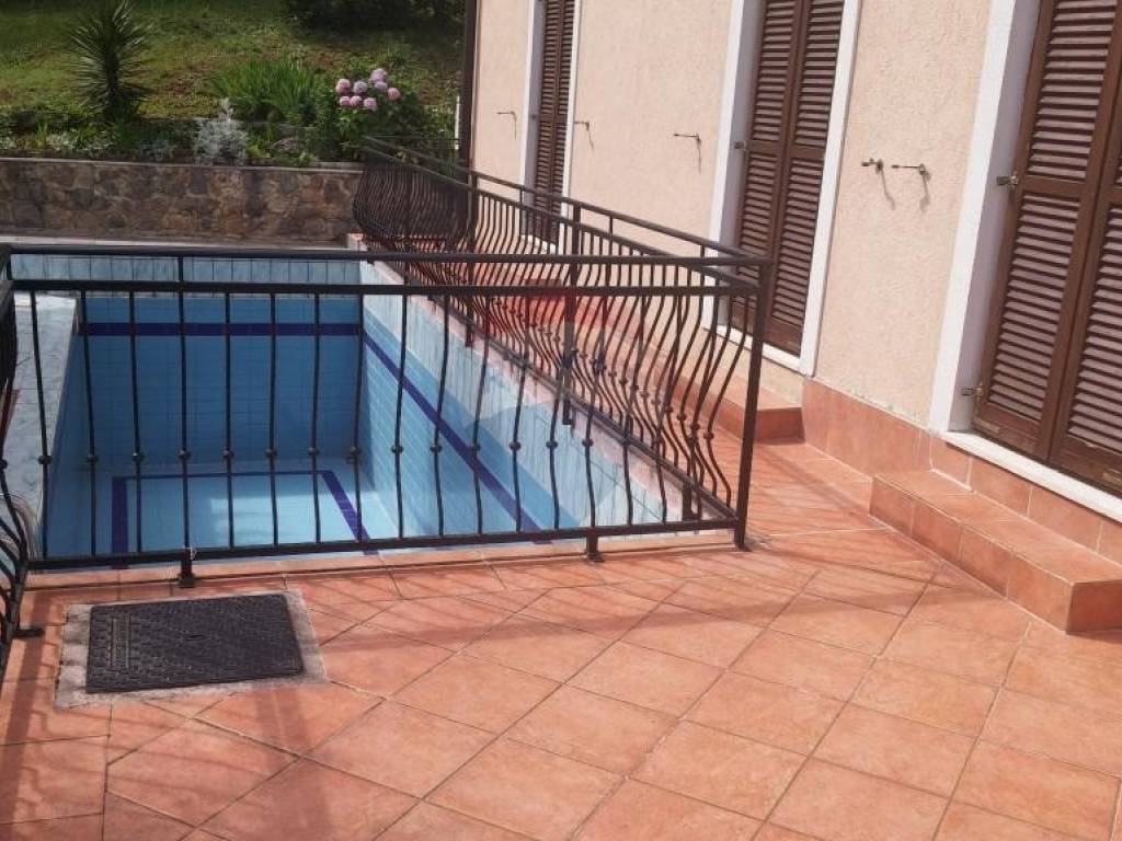 samostojeća vila sa tri etaže ukupno 332 m2, na prvom i drugom katu su dva odvojena stana 3s + db svaki po 110 m2. u prizemjlu kuće vinski podrum sa garažom i pomoćnim prostorijama 110 m2 . 800 m2 okućnice . bazen, vrtna kućica i vanjski roštilj. skladno i lijepo uređeno.
